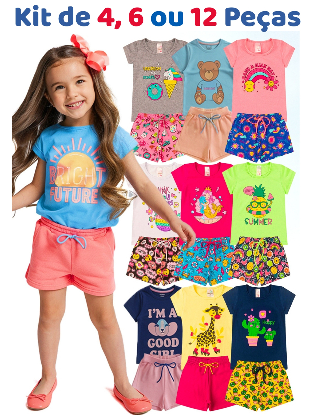Kit de 4, 6 ou 12 Peças Roupa Infantil Menina Verão Conjunto Criança Feminino Pronta Entrega