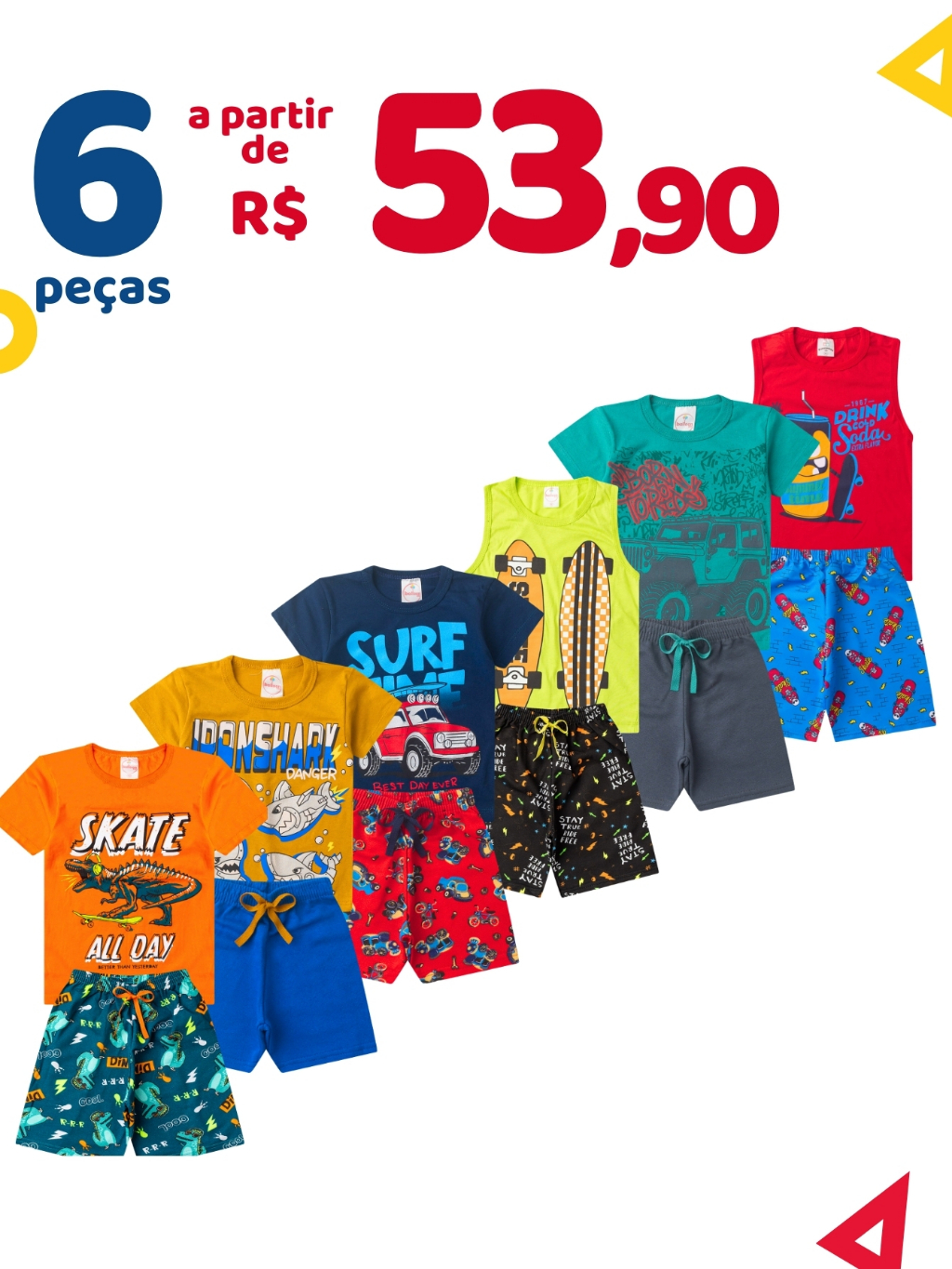 Kit 6 Peças Roupa Infantil Menino Verão Conjunto Criança Masculino Promoção
