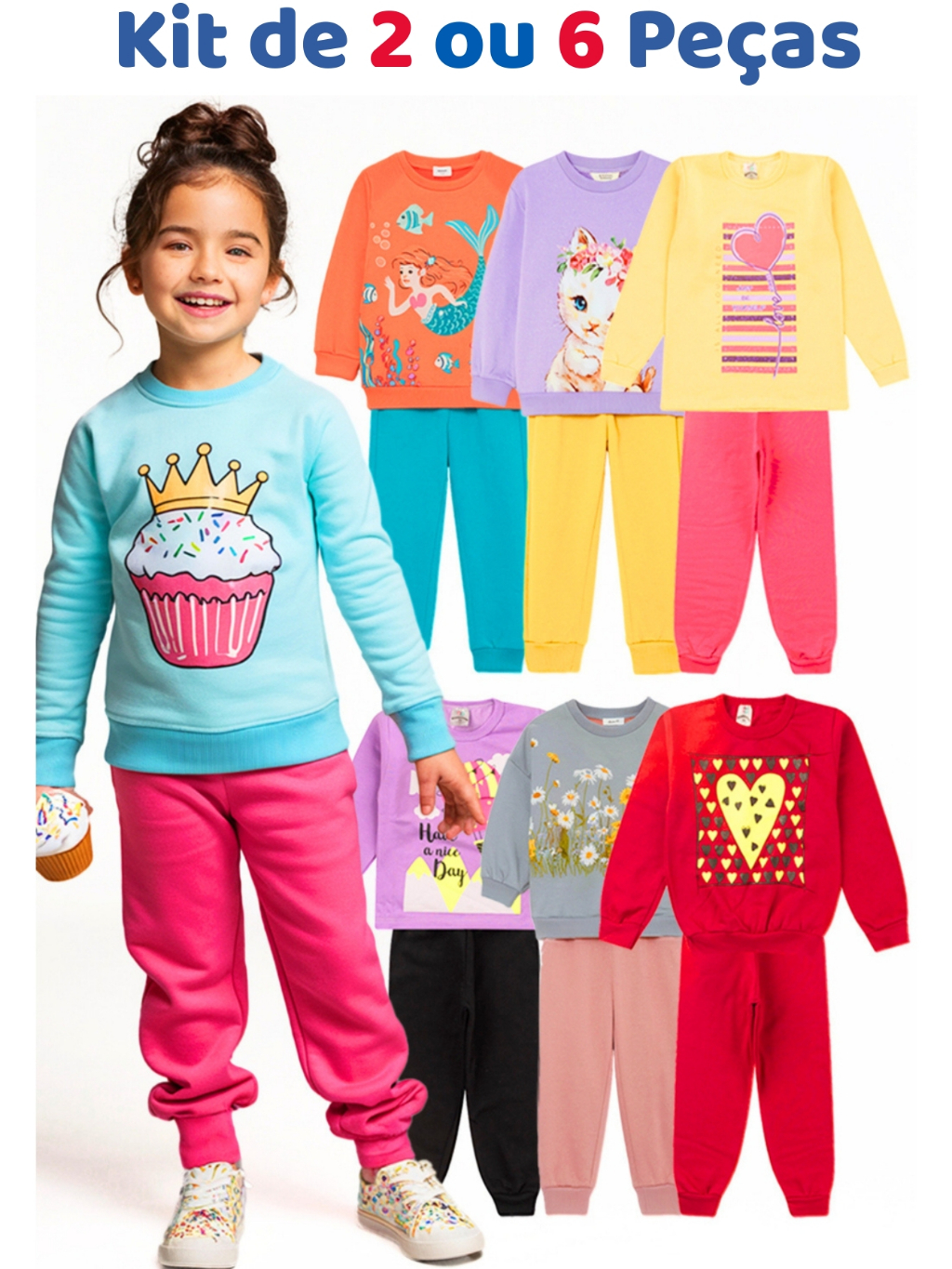 kit de 2 ou 6 Peças Moletom Infantil Menina Conjunto Feminino Outono Inverno