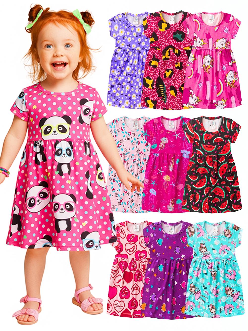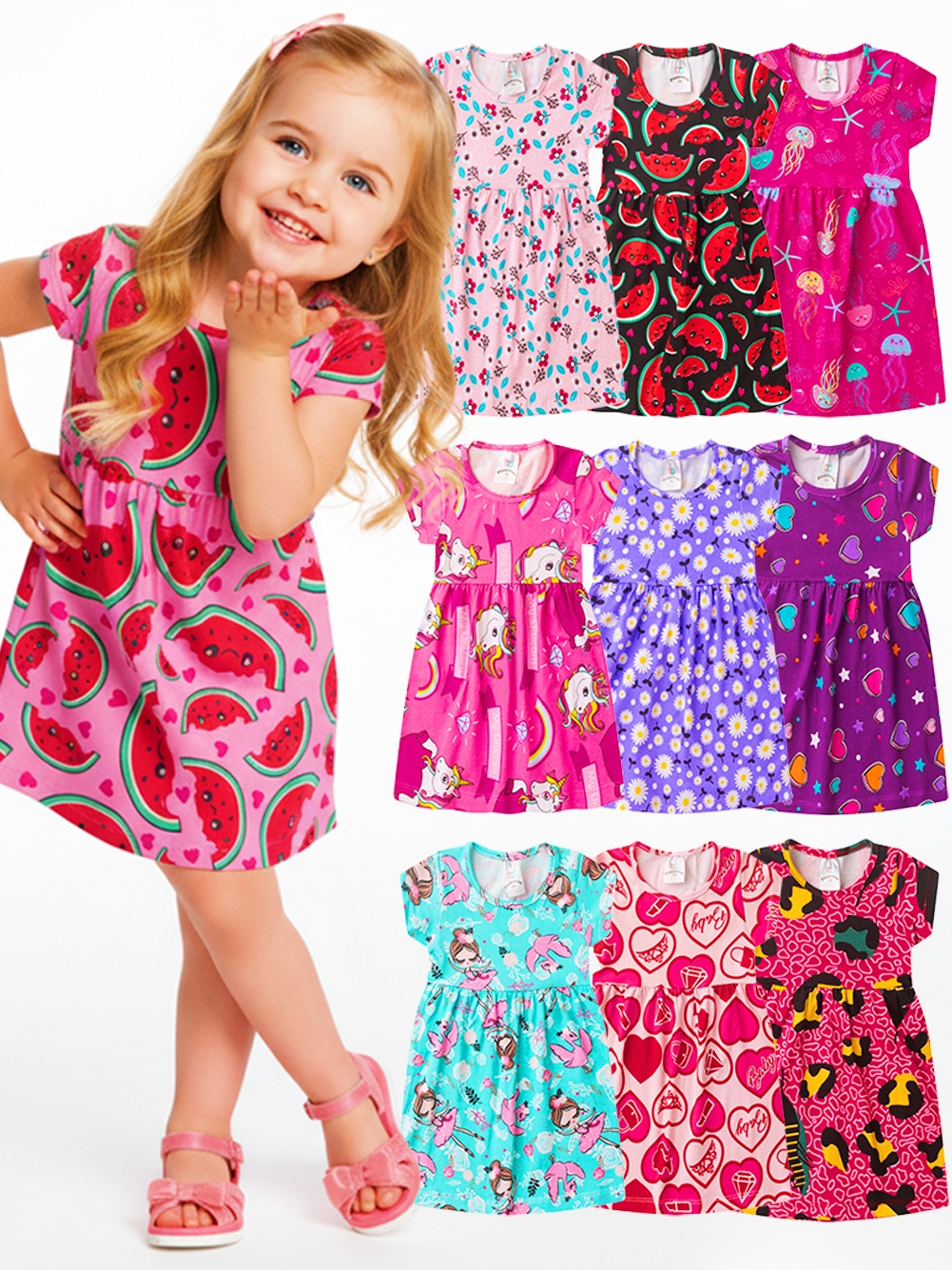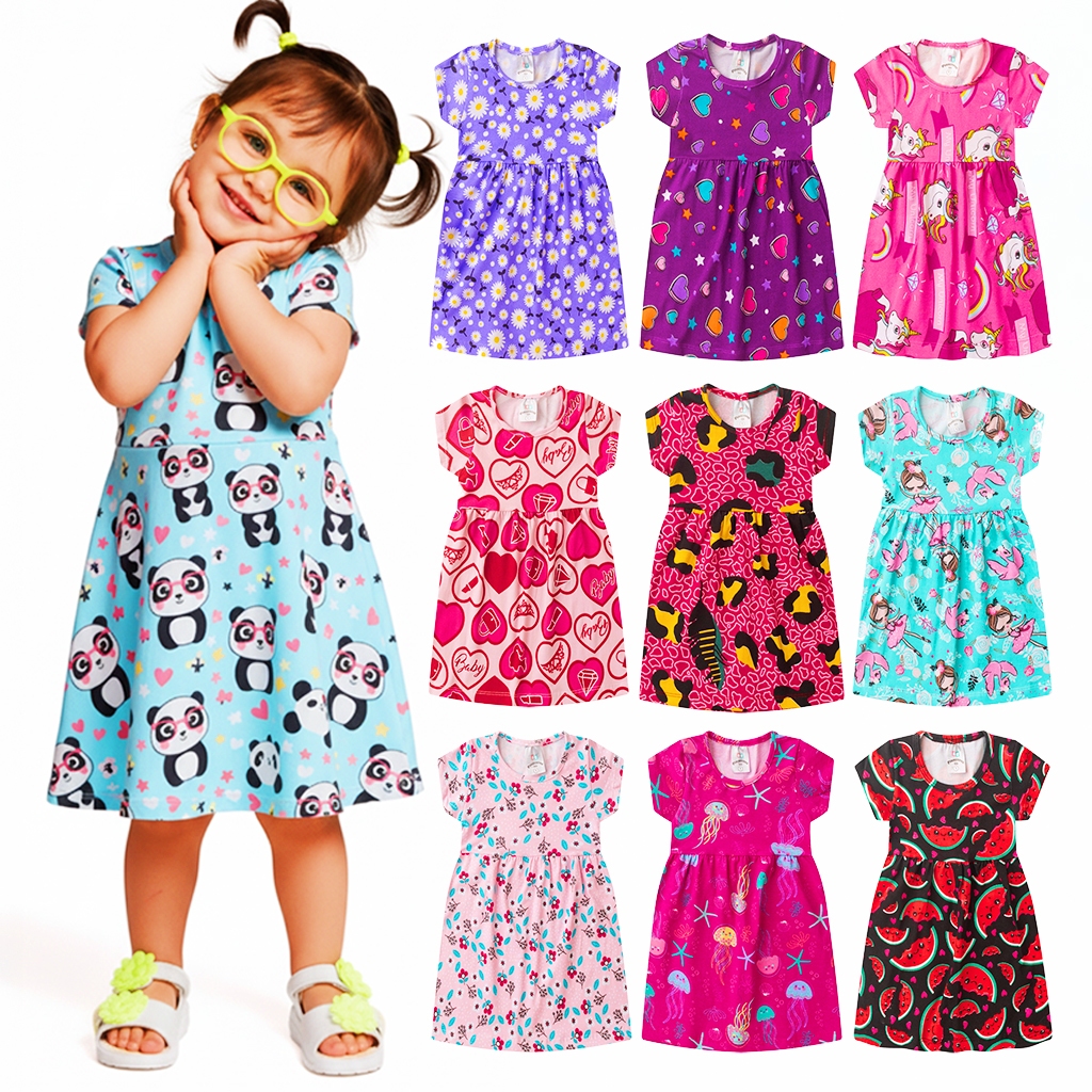 Kit de 4 ou 5 Vestidos Infantil Menina Feminino Verão 1 ao 8