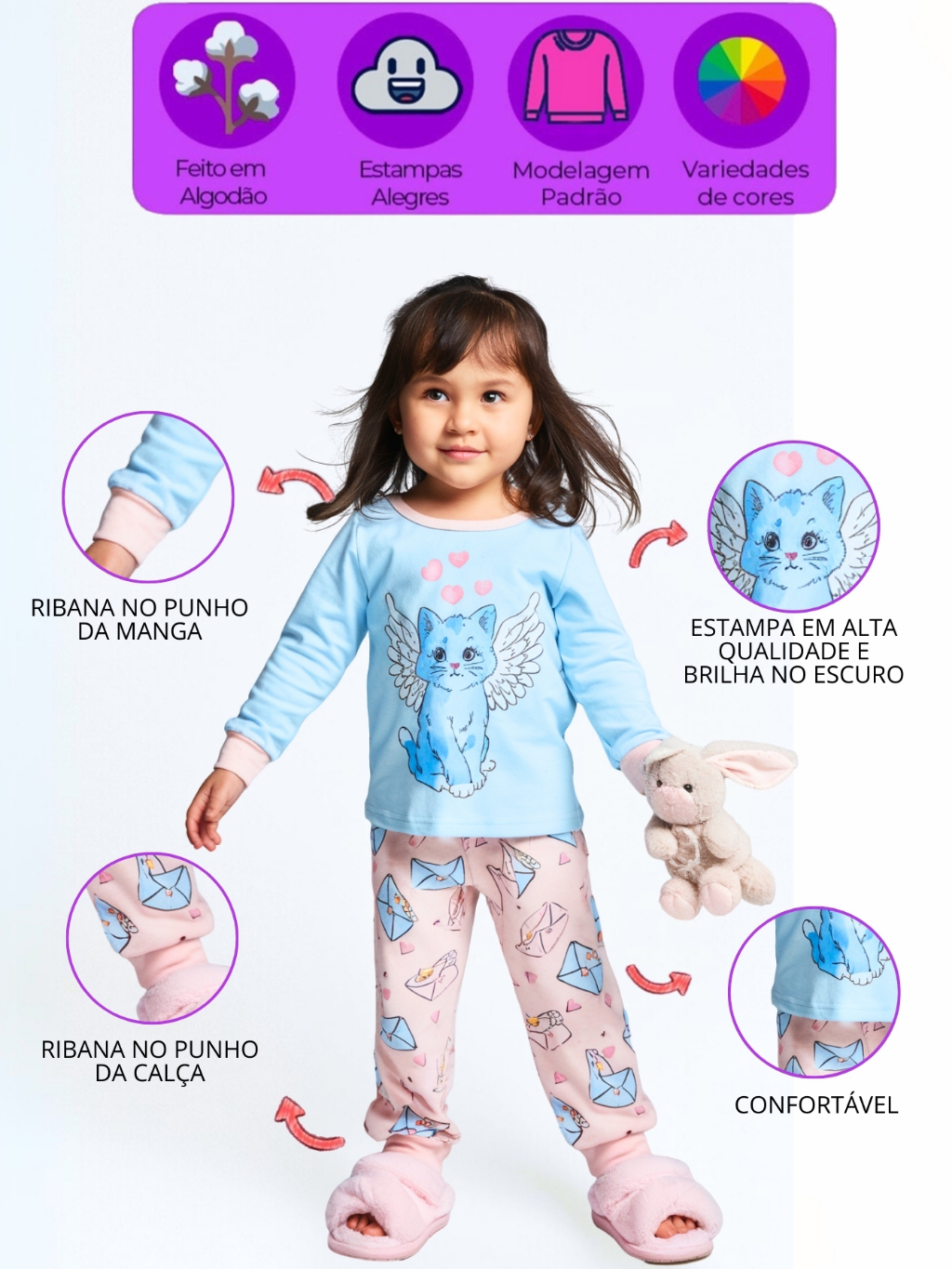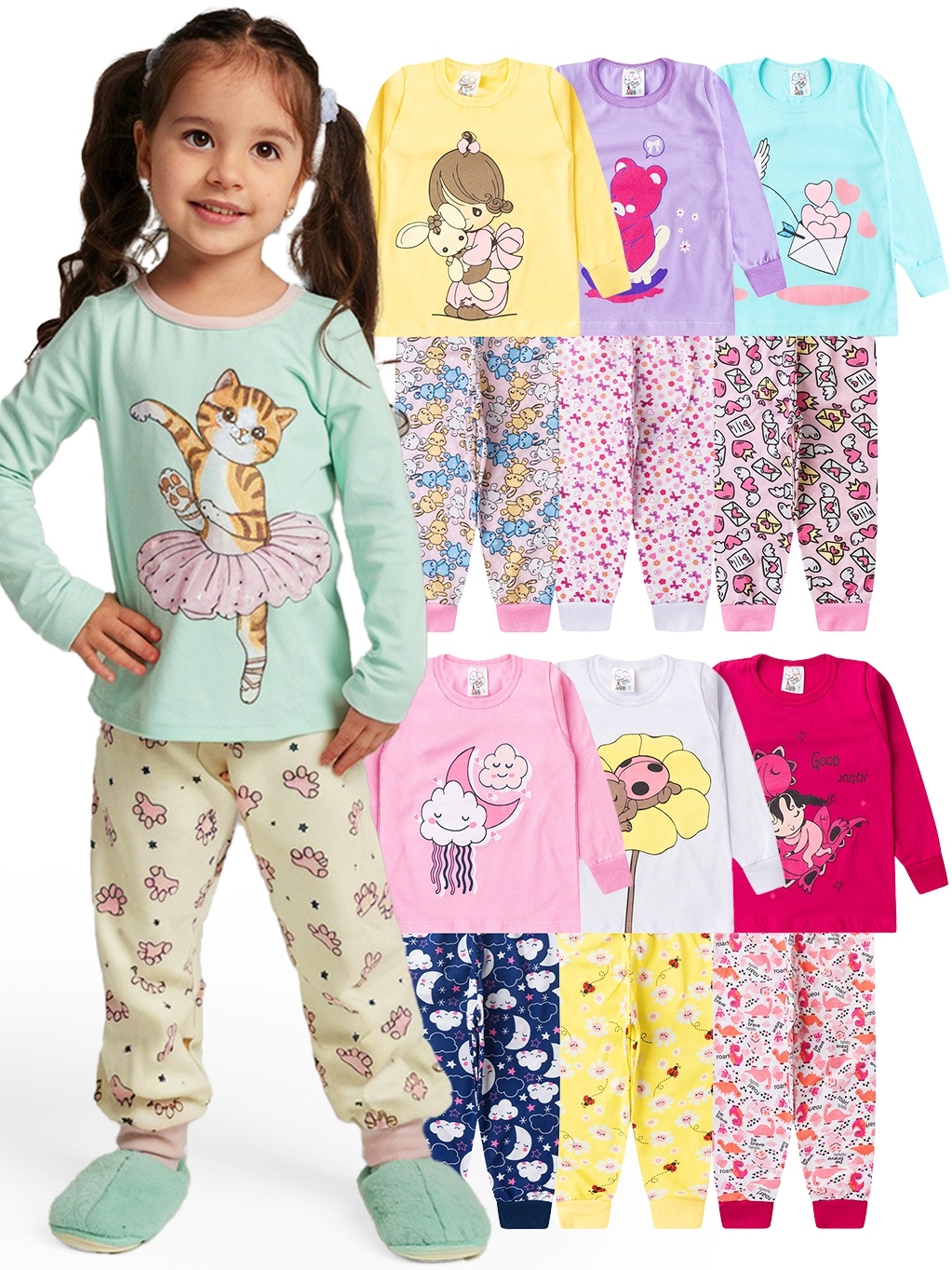 Kit 2, 6 ou 10 Peças Pijama Brilha no Escuro Infantil Menina Inverno Roupa Infantil Feminina