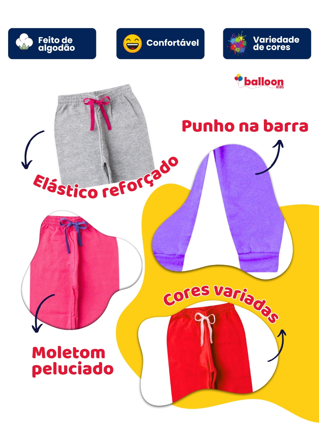 Kit 3 Calças Moletom Infantil Menina Inverno Peluciado Feminino