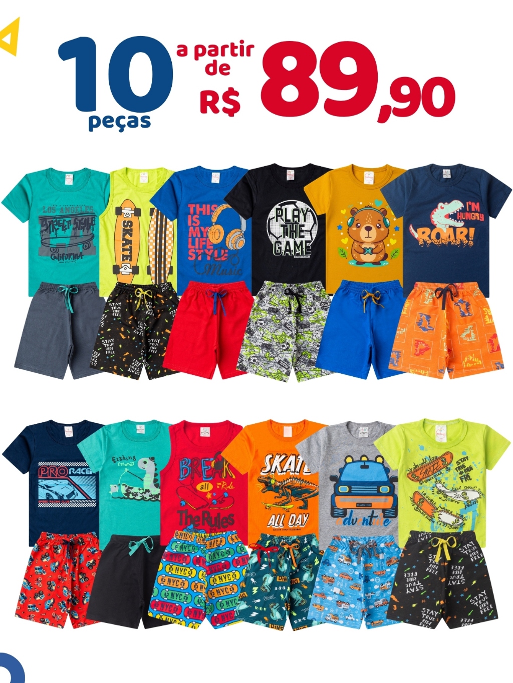 Kit 10 Peças Roupa Infantil Menino Verão 5 Bermudas + 5 Camisetas Conjunto Criança Masculino