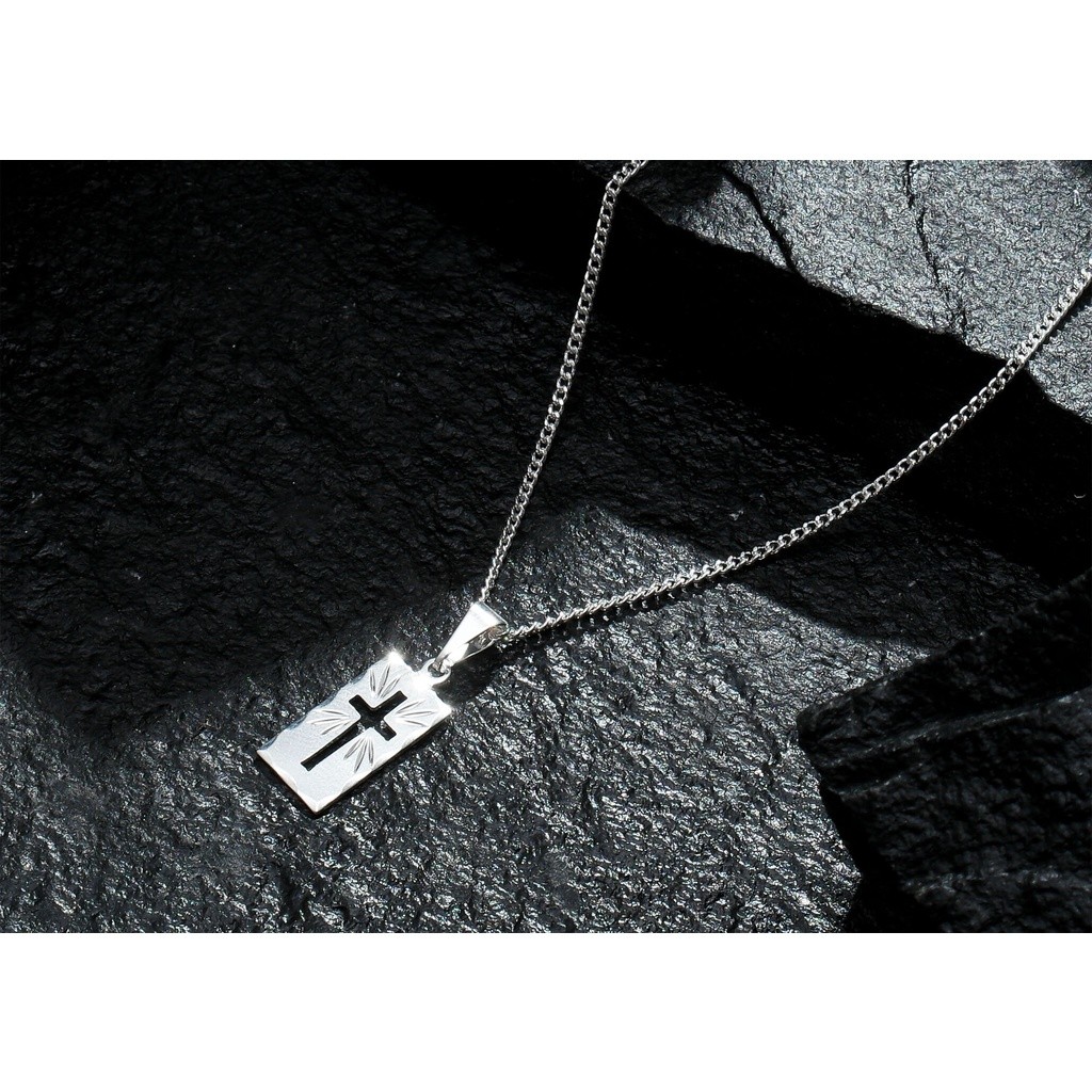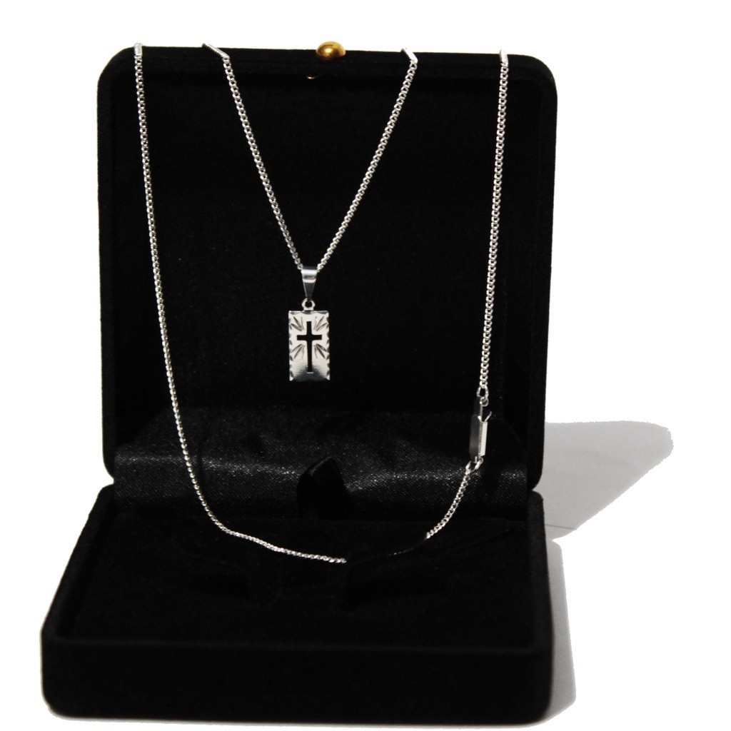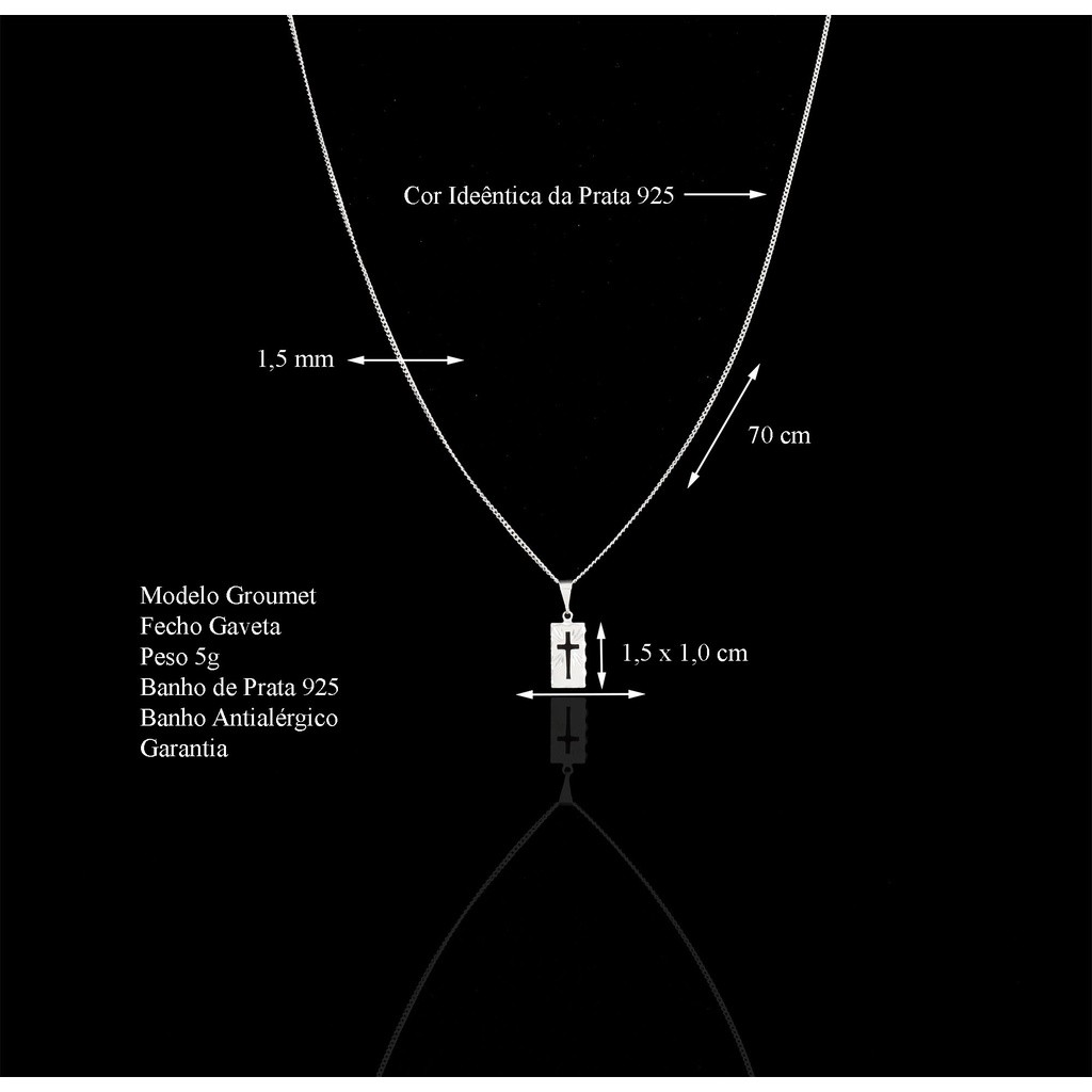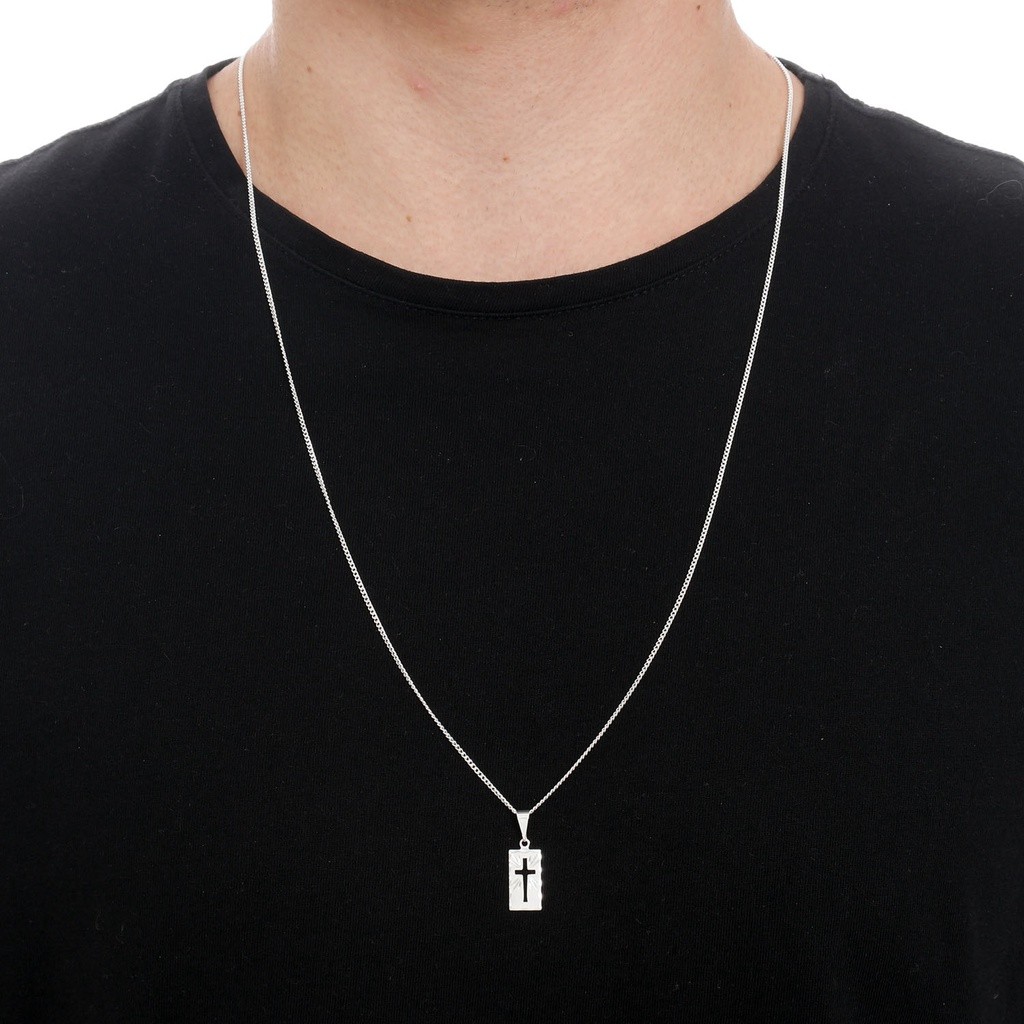 Correntinha Masculina 70 cm Banhado A Prata 925 + Pingente Placa Cruz