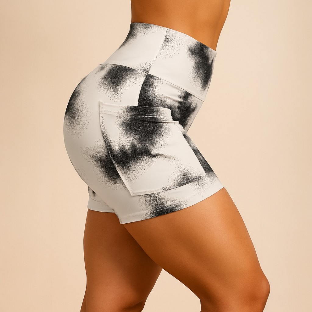 Kit 2 Shorts Fitness Feminino Academia Cós Alto Meia Coxa Zero Transparência Bermuda estampada