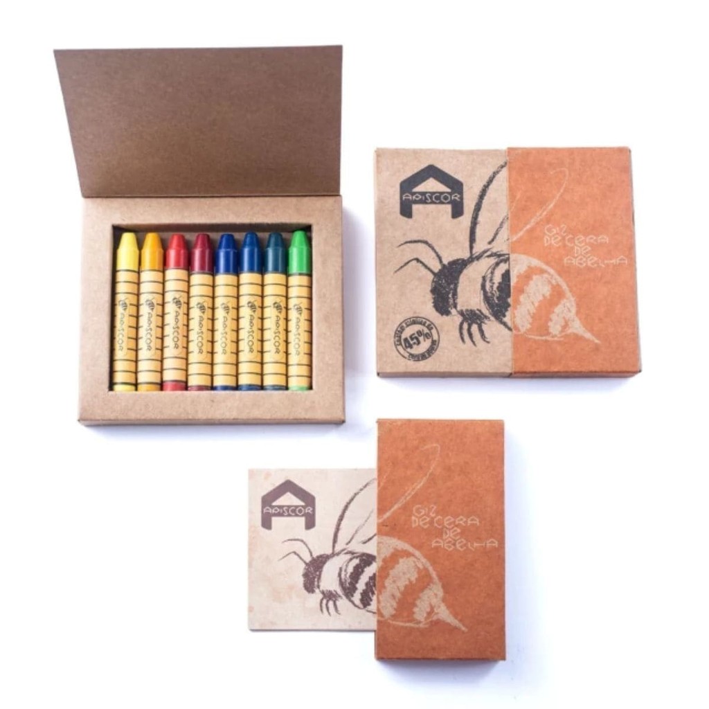 Giz De Cera Abelha 08 Cores Bastões Básicas Apiscor