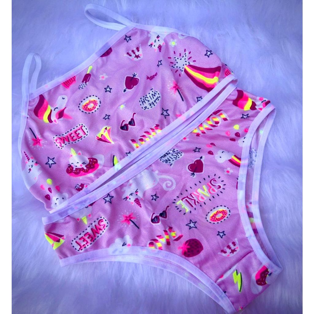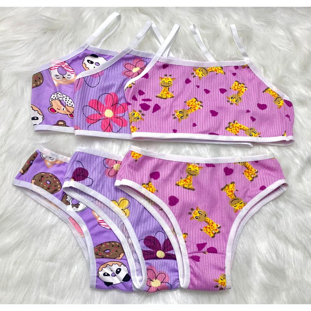 Kit 3 Conjuntos Infantil Menina Moça Top e Calcinha - Suede Estampado (1 a 12 anos)