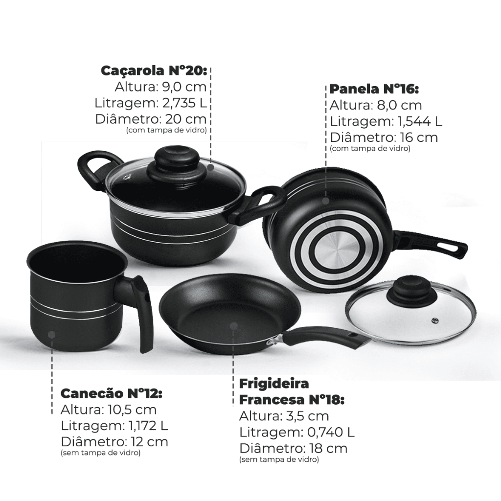 Jogo de Panelas Antiaderente 4 Peças Araflon