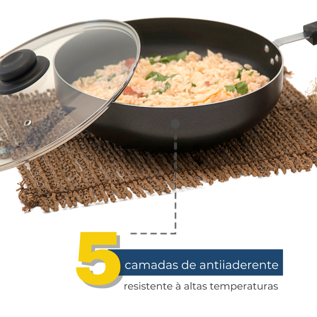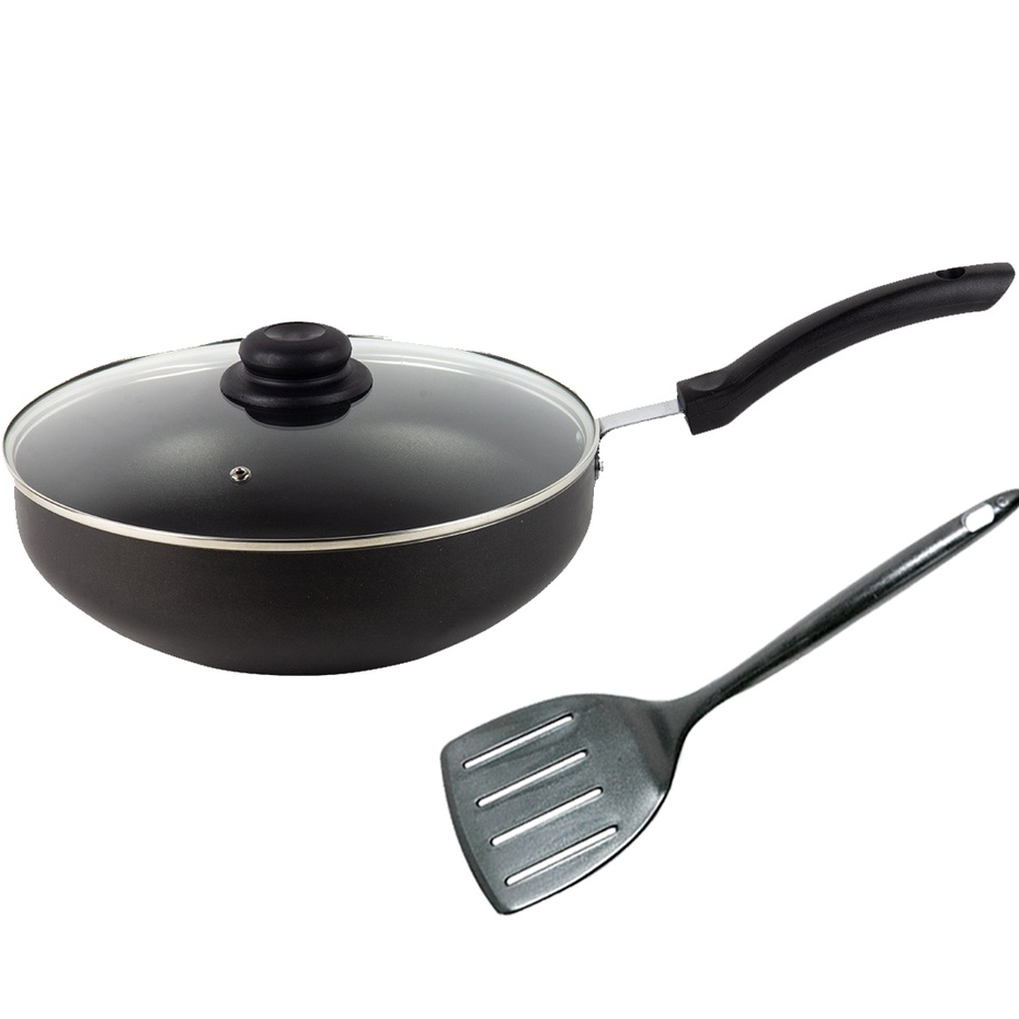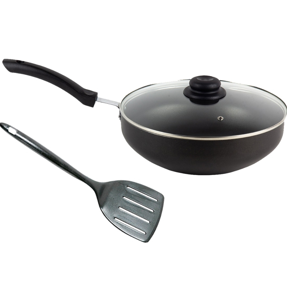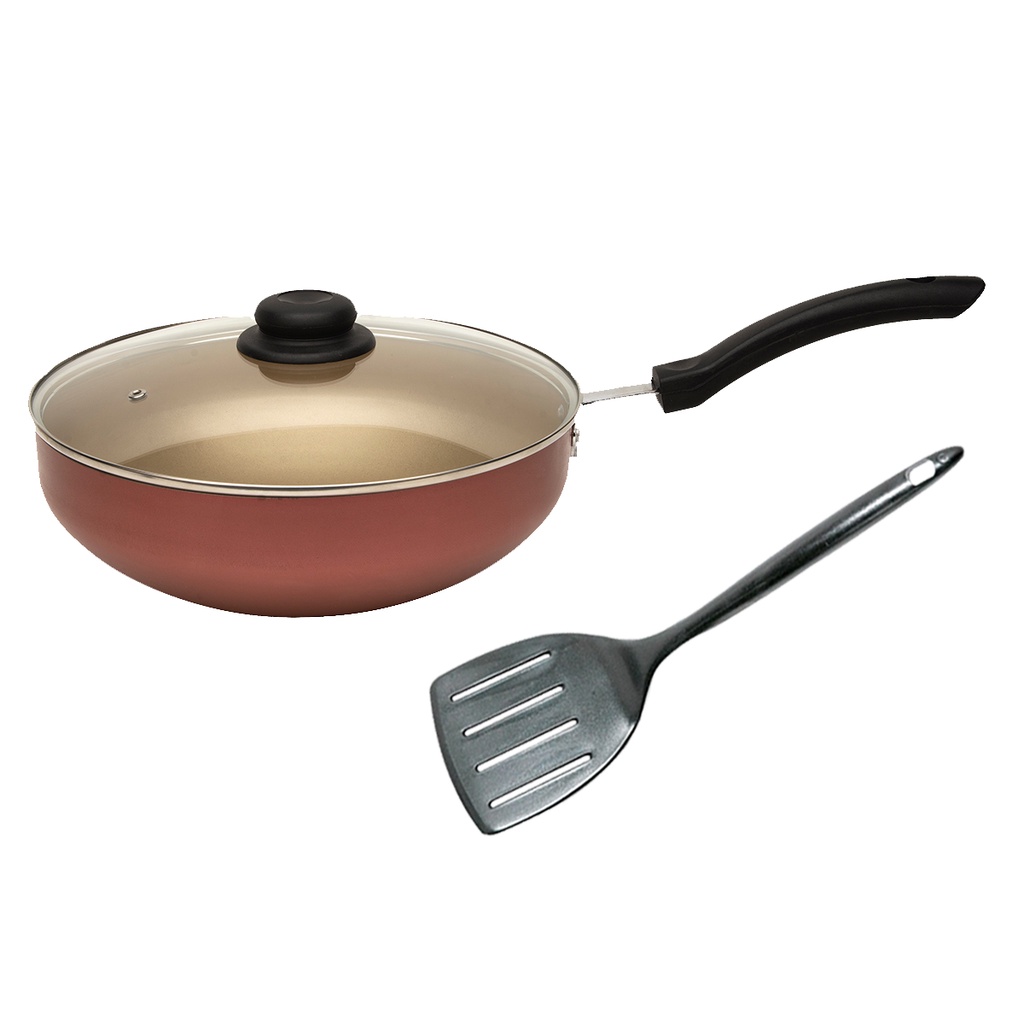 Frigideira Wok Antiaderente com tampa de vidro Nº28 + Espátula em Nylon