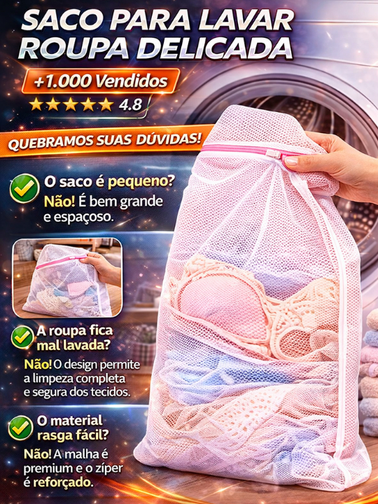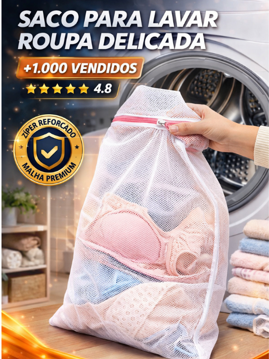 Saco Para Lavar Roupa Delicada Protetor Lingerie Máquina Zíper Reforçado Anti Danos Kit 3 / 6 / 9