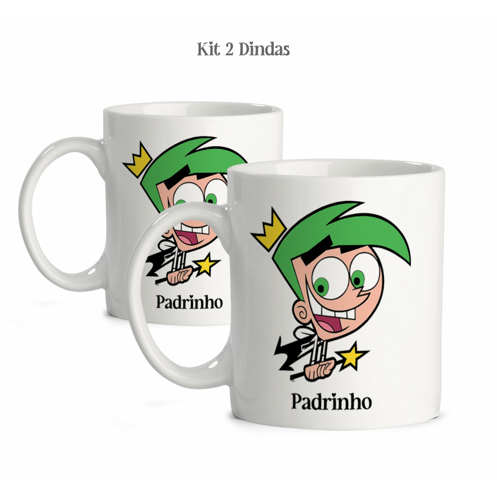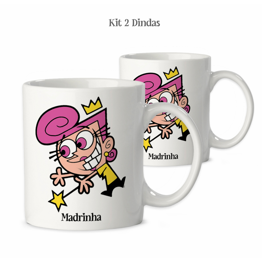 Caneca Padrinho Madrinha Dindo Dinda de Batismo Desenho Padrinhos Mágicos - Kit 2 Unidades