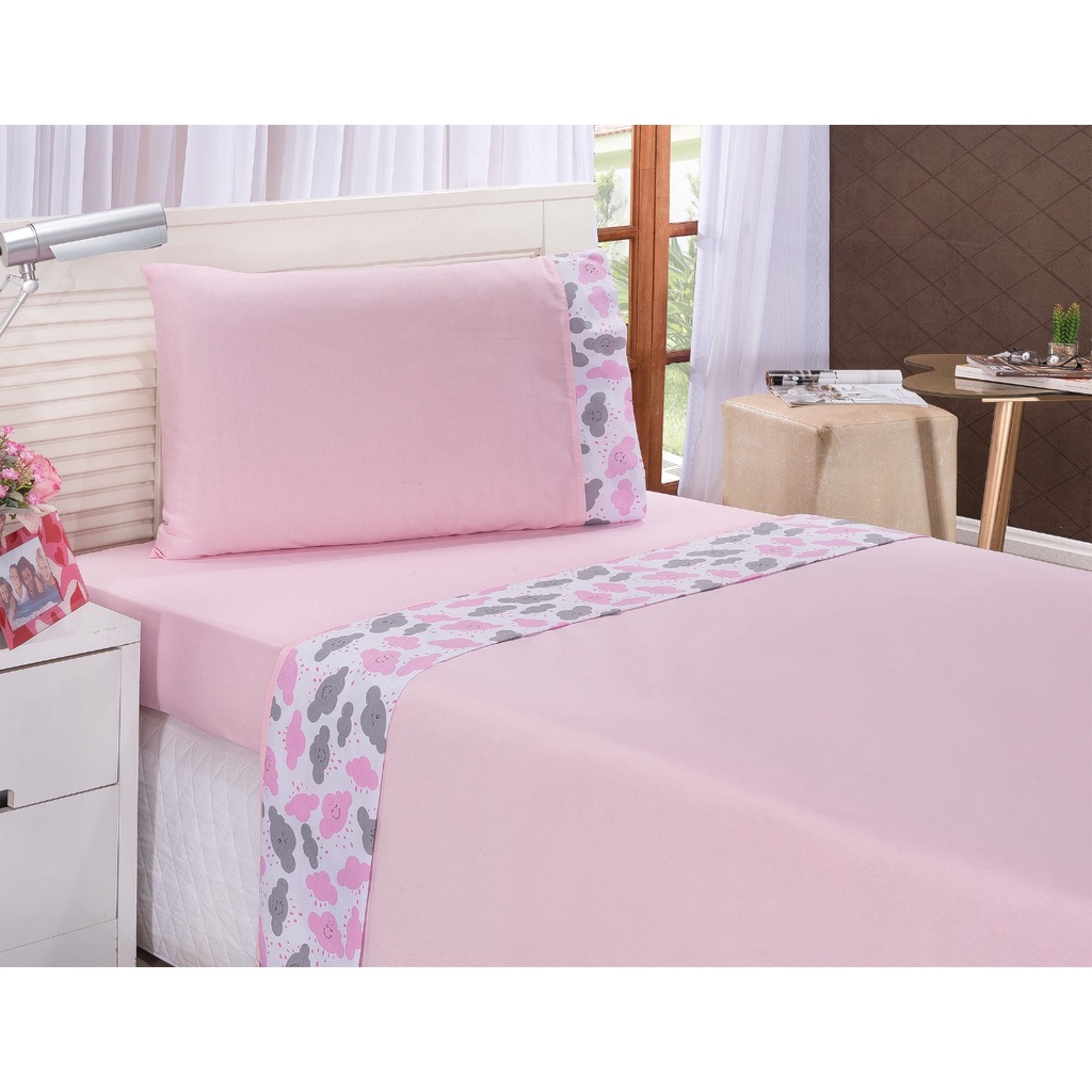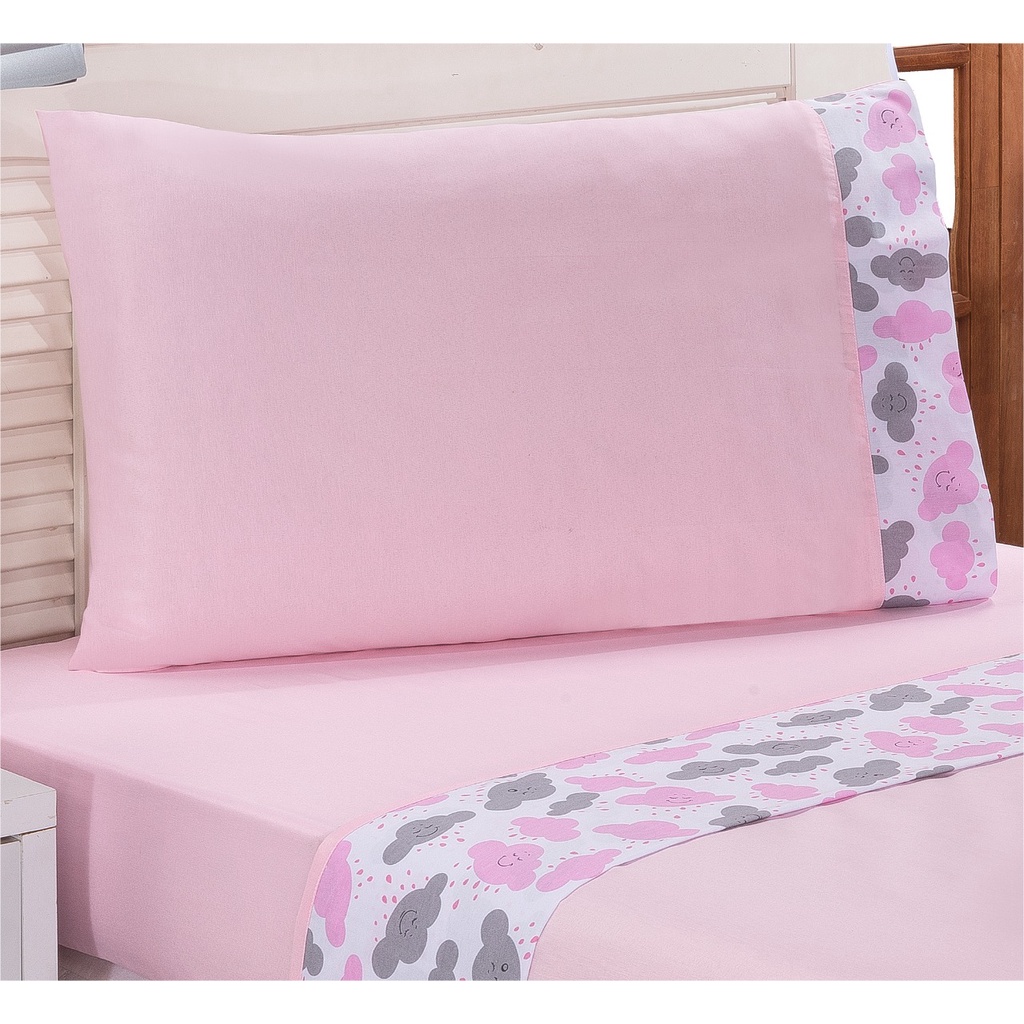 Jogo de Cama Solteiro Infantil menina Nuvem Rosa 3 Pçs Percal Algodão