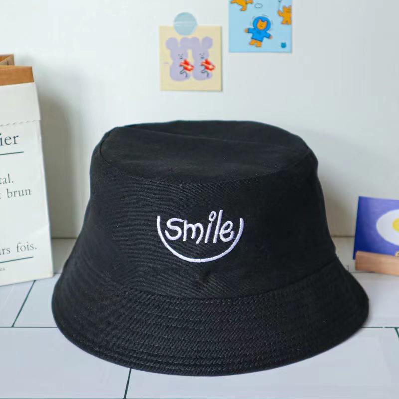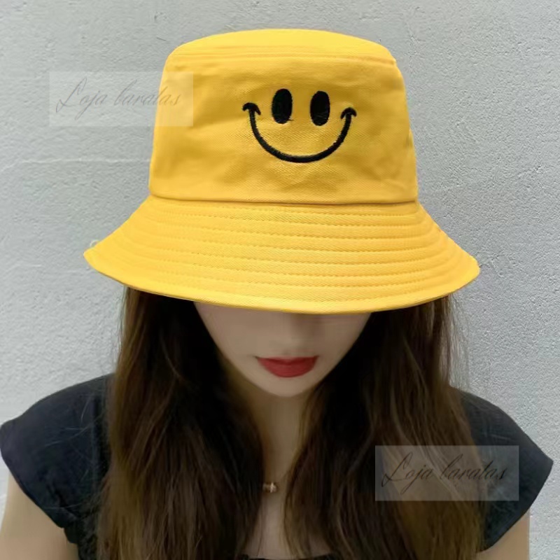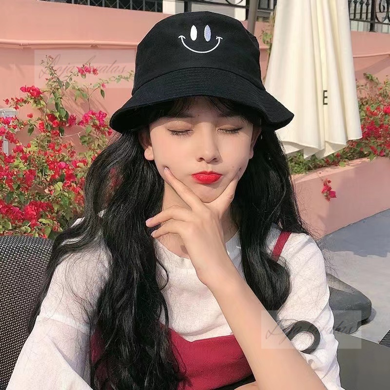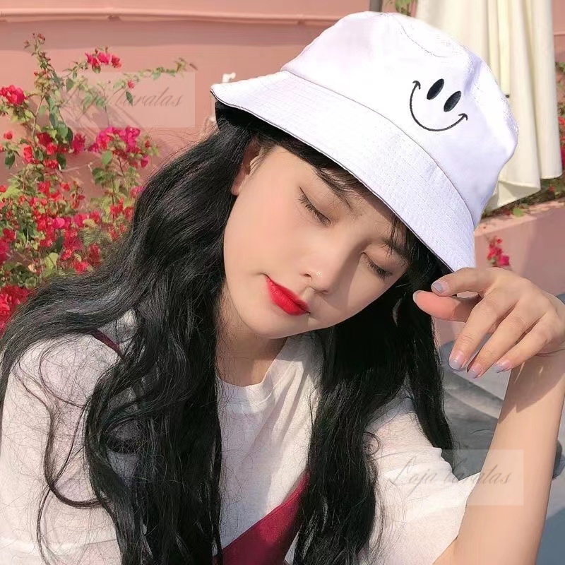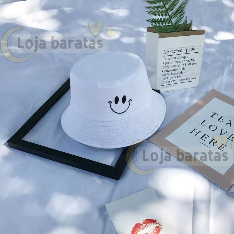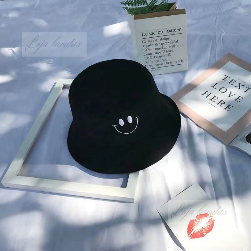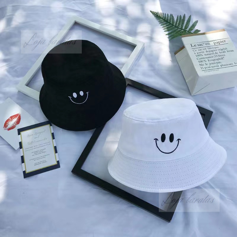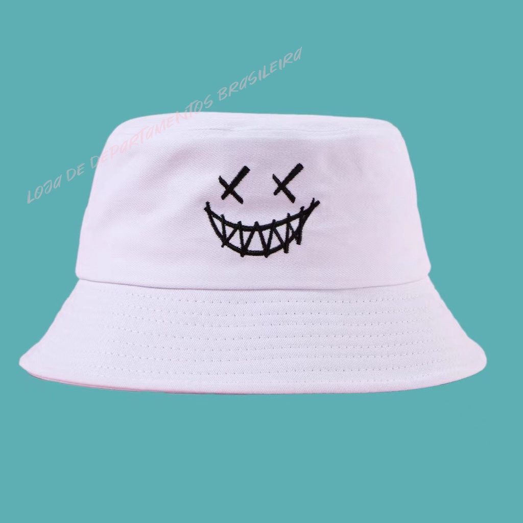 Bone Chapeu Bucket Hat Smile Sorriso Preto /Branco Top