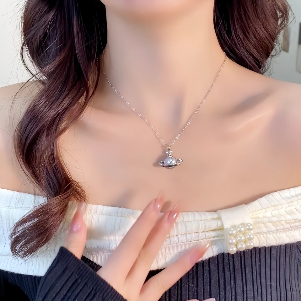 Planeta Estrelado Azul Bonito Dos Desenhos Animados Sonho Lua Pingente Colar Para Mulheres Acessórios Presentes