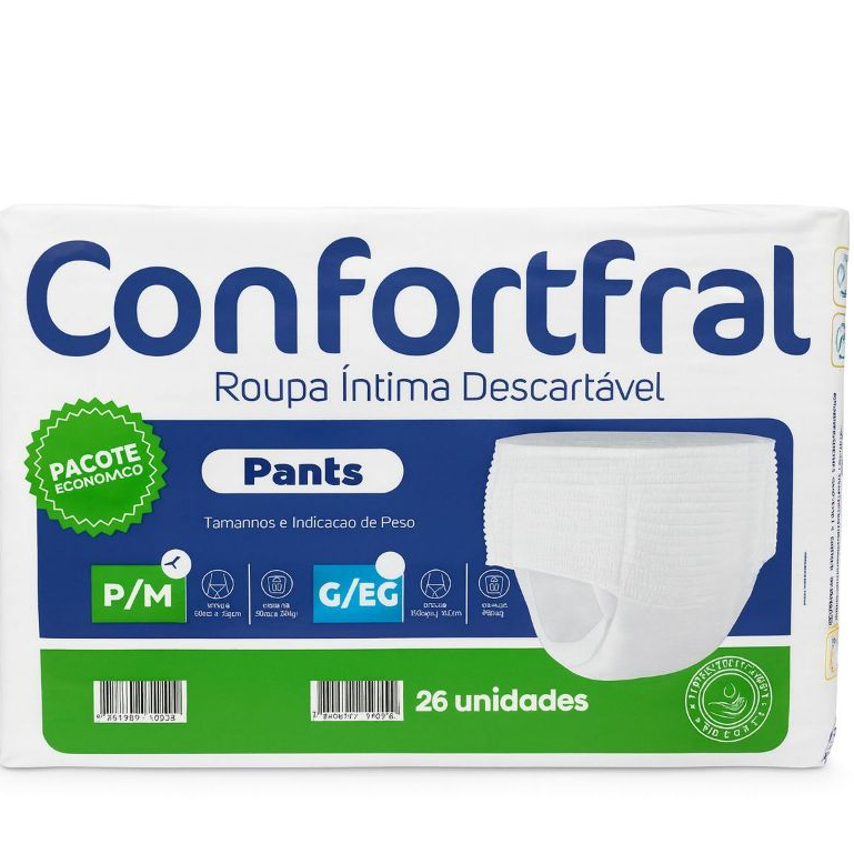 Fralda Descartavel Geriatrica PACOTÃO CONFORTFRAL 2 LINHA Pants G/EG 26UNIDADES Incontinência Severa