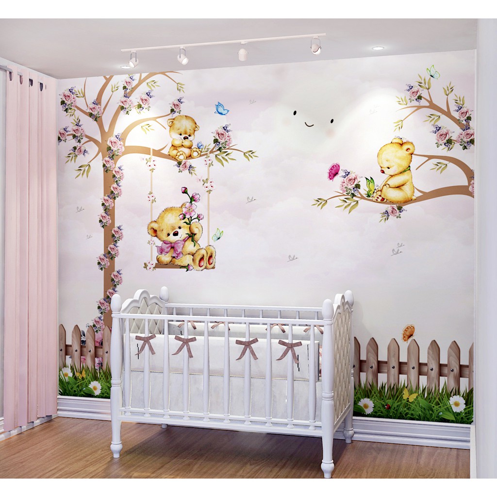 Papel de Parede Ursinhos Fofos Quarto Infantil de Bebê e Criança Rosa Personalizado
