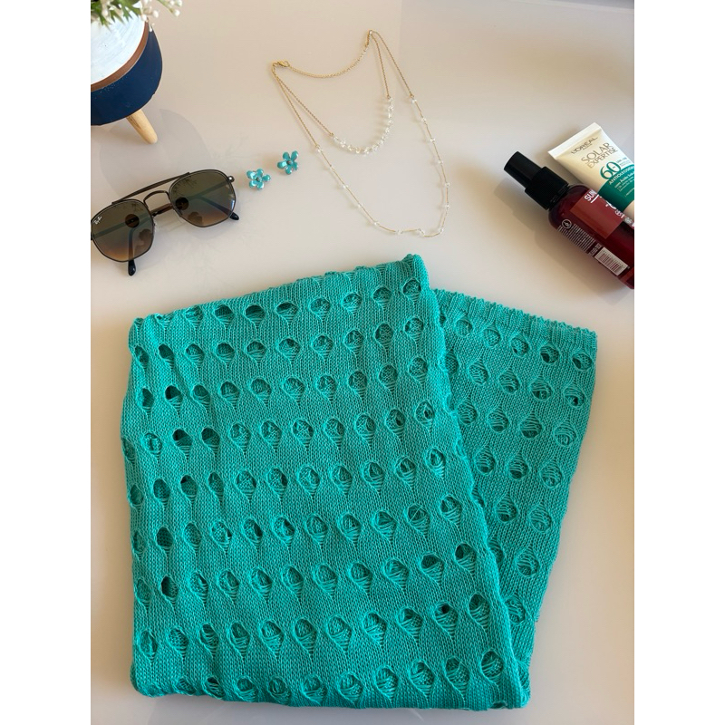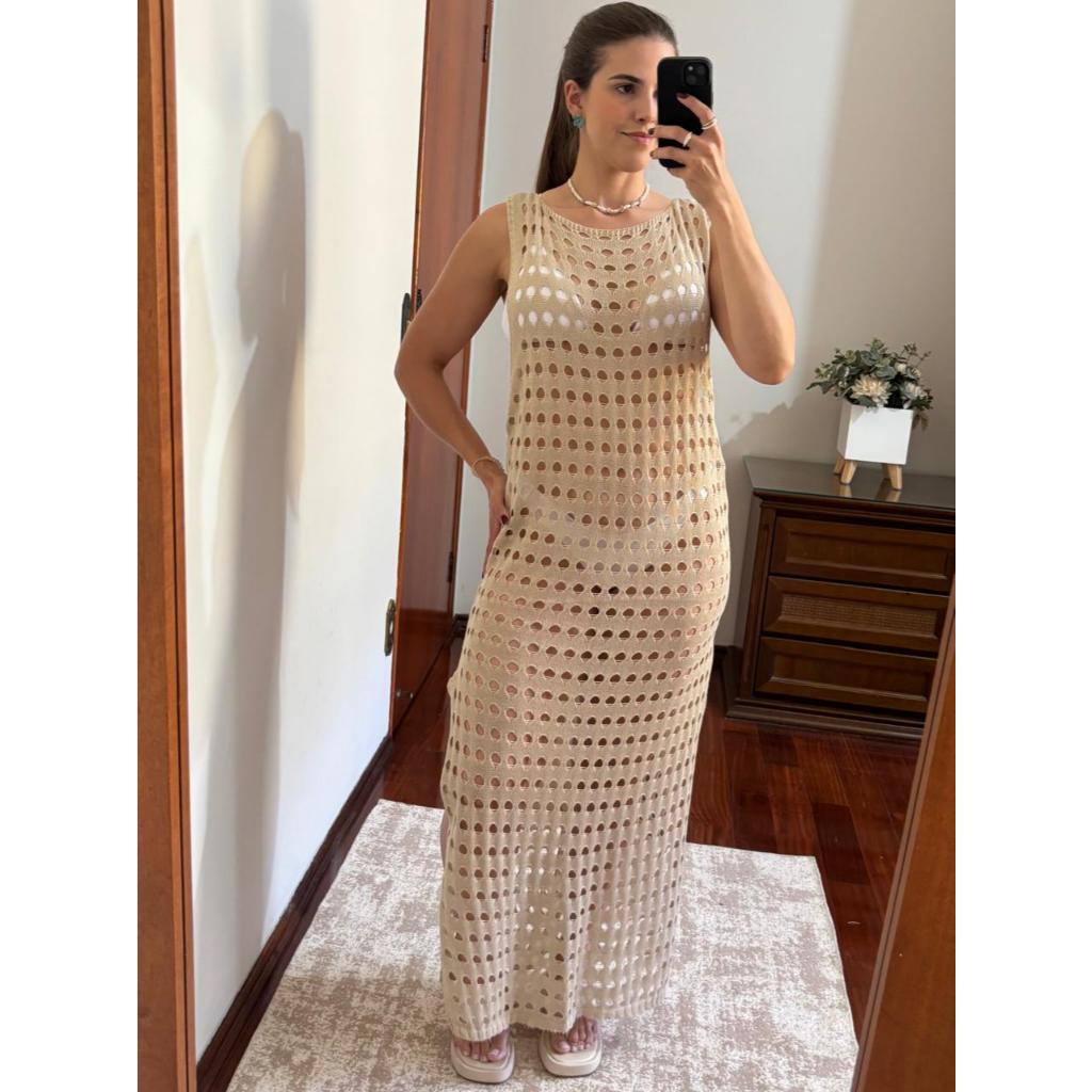 Vestido Saída de Praia Longa com Fenda Canga Elegante Tricot Rendada
