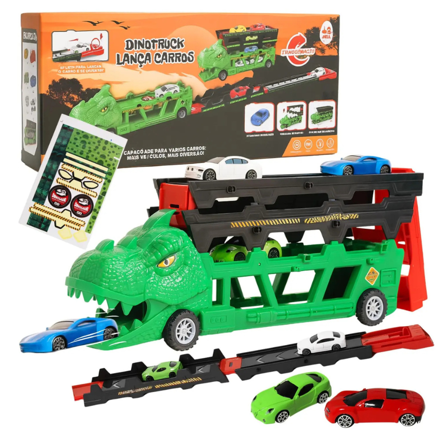 Carrinho Carreta Caminhão Cegonha Com Pista e Carrinhos Mais Lançador