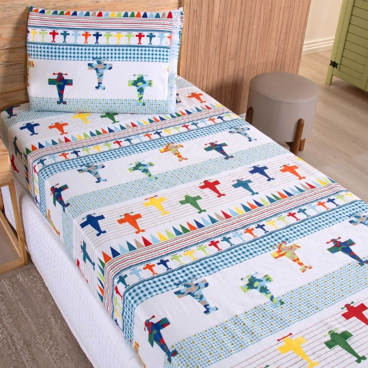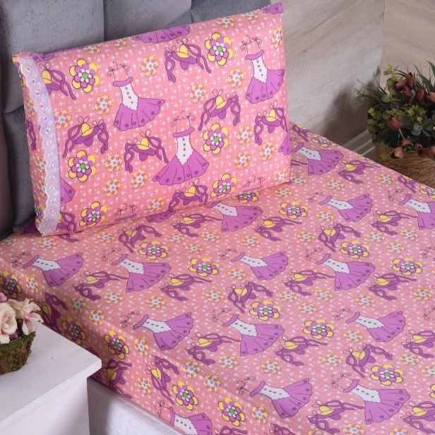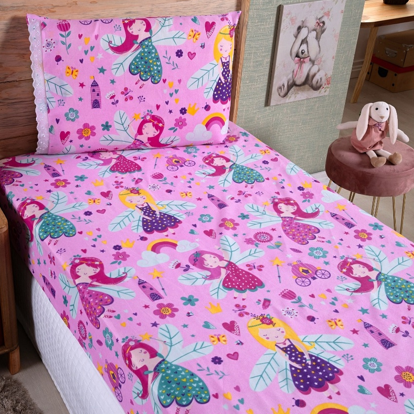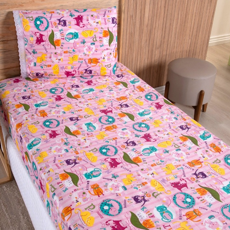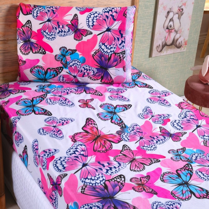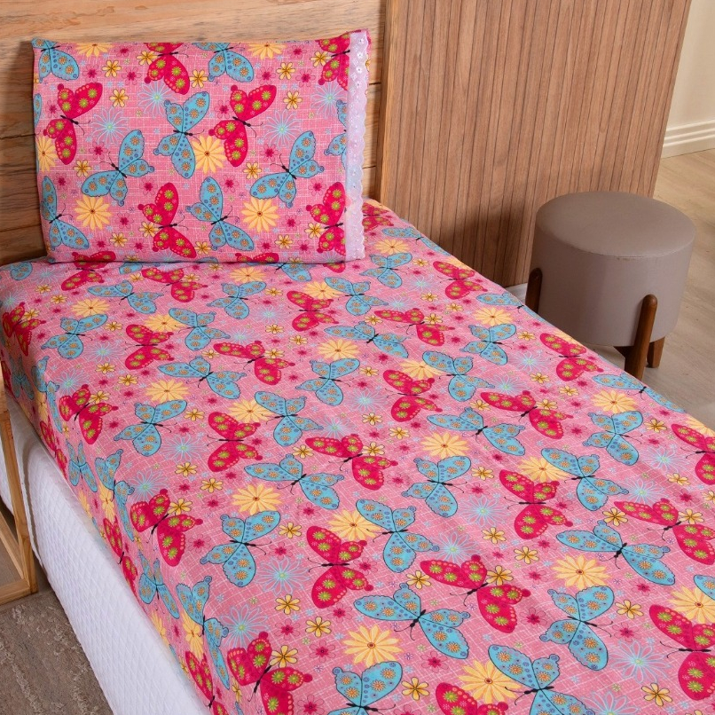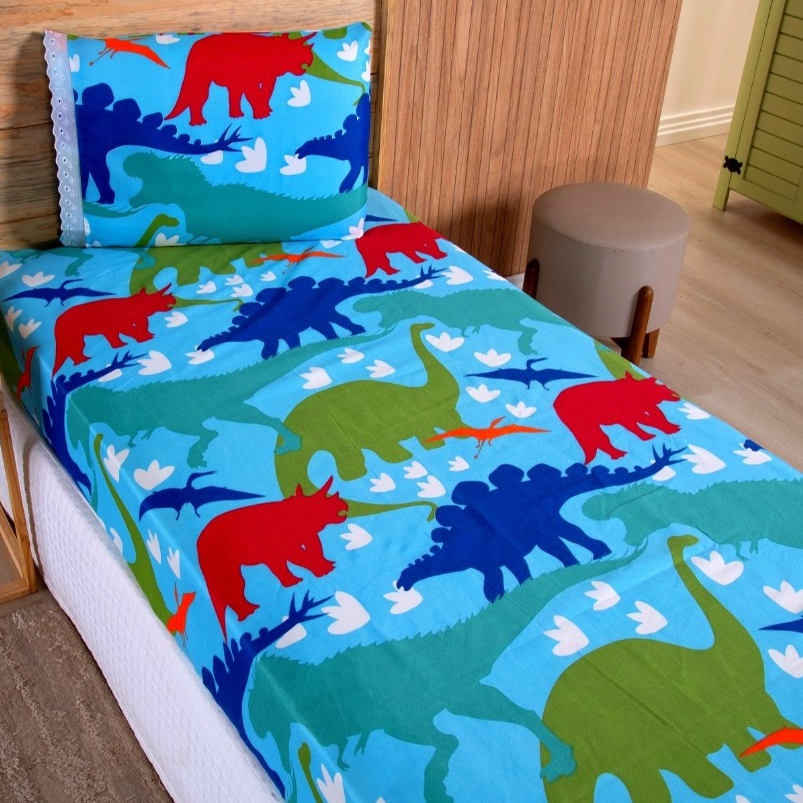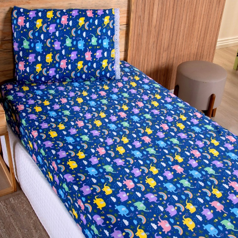 Jogo Lençol Solteiro 02 Peças Microfibra Estampas Infantis Criança Azul Rosa Verde