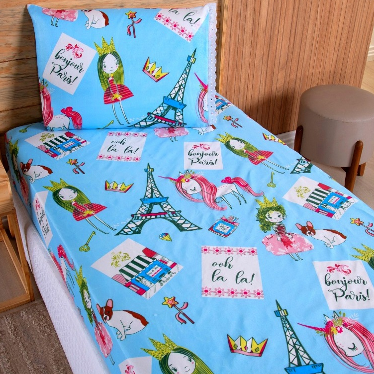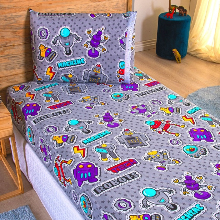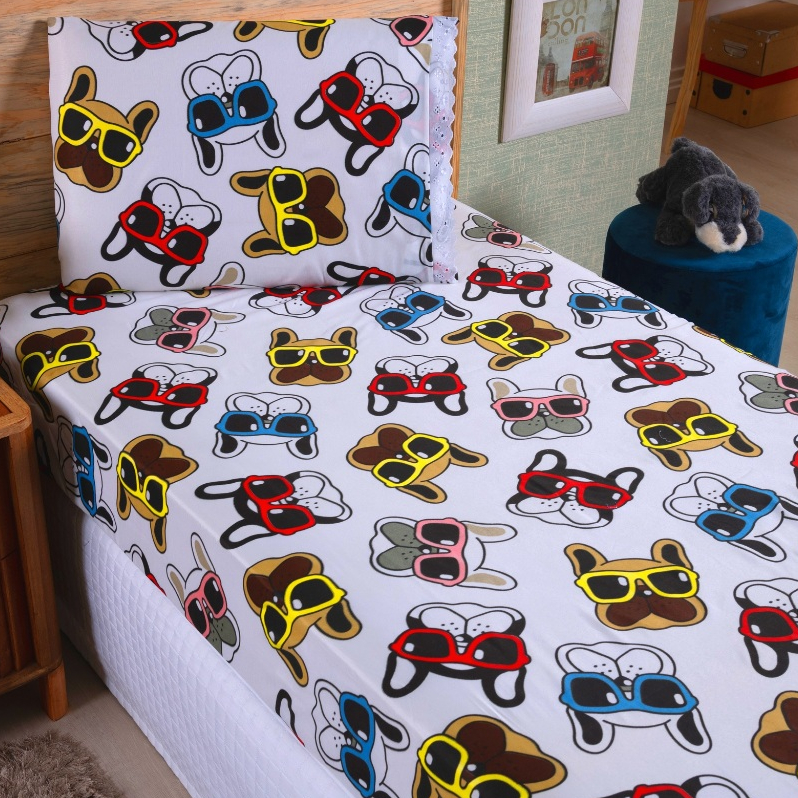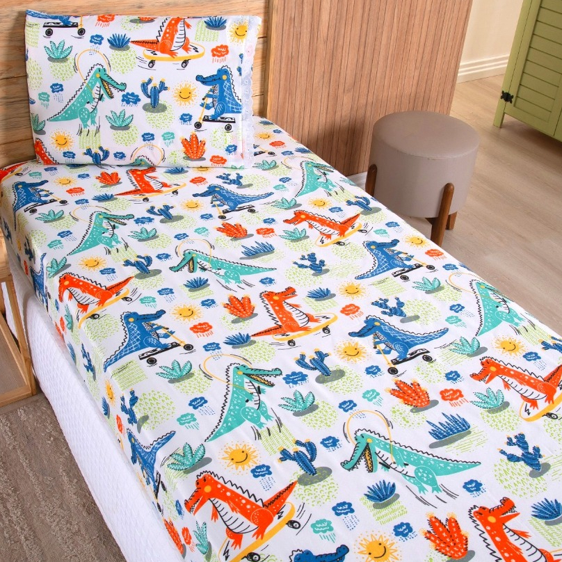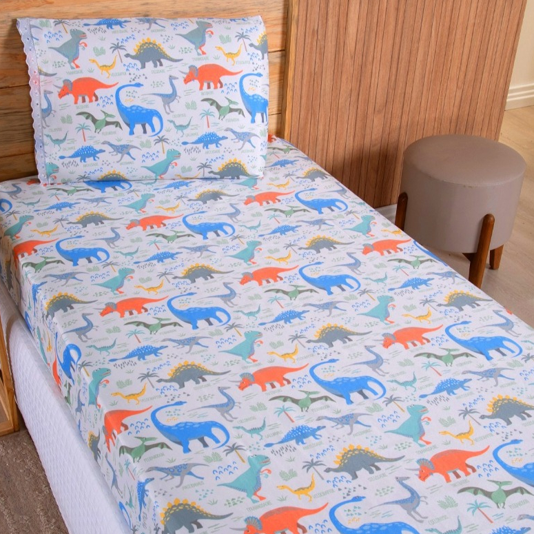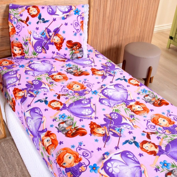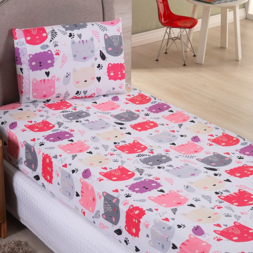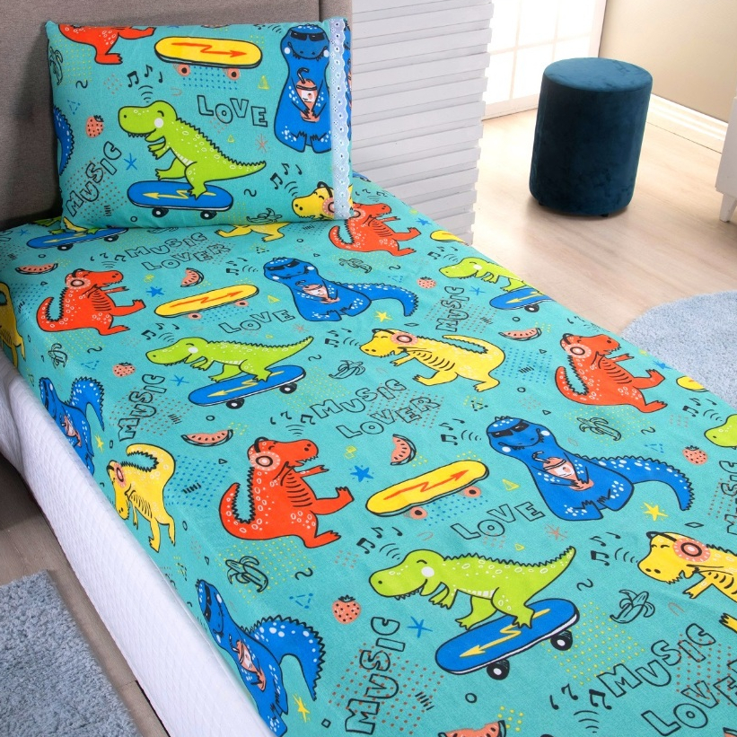 Jogo Lençol Solteiro 02 Peças Microfibra Estampas Infantis Criança Azul Rosa Verde