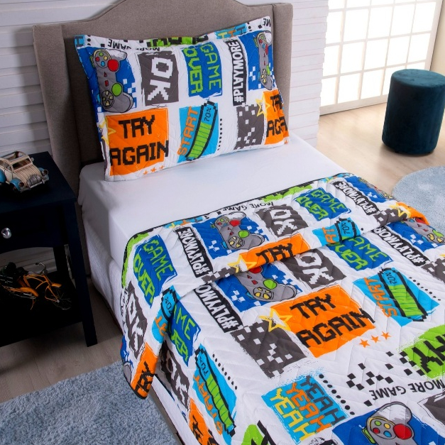 Kit Colcha Cobre Leito Solteiro 2 Pçs Estampas Infantil