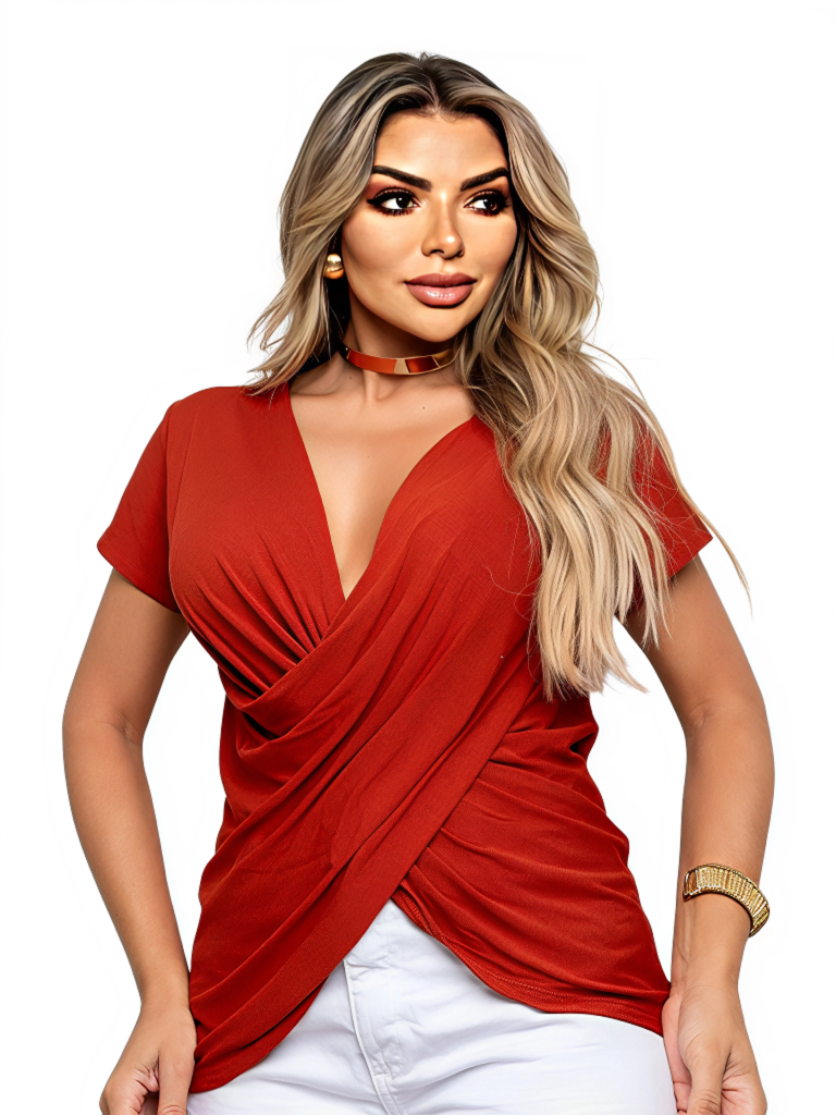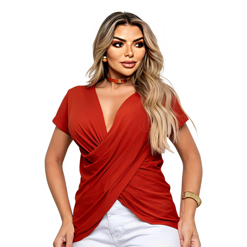 Blusa Feminina Transpassada Decote V Manga Curta Viscolycra Casual Verão