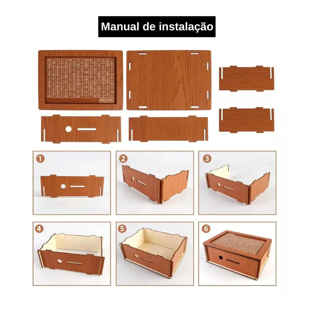 Cofre Desafio 10Mil Woodbox Cofrinho Caixa De Dinheiro Poupança - MDF Premium presente natal