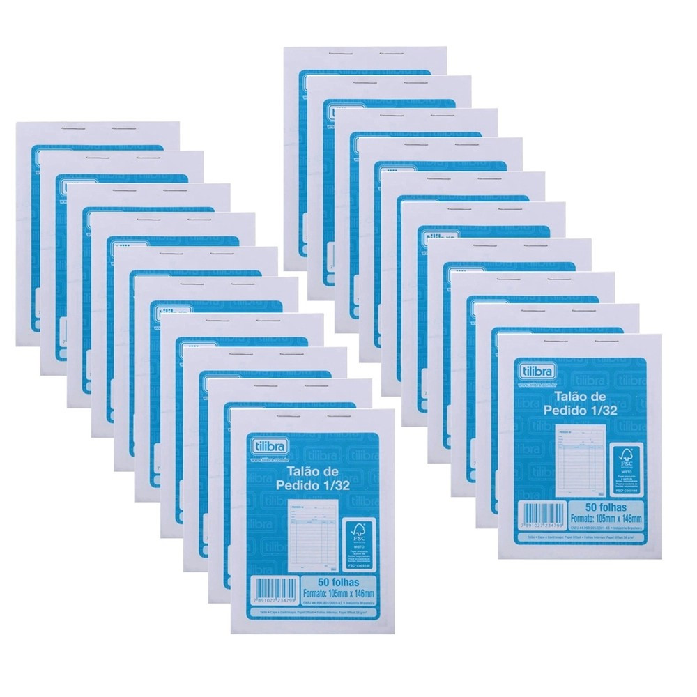 Talão De Pedidos 1/32 Tilibra 50 Folhas Com 20 Blocos