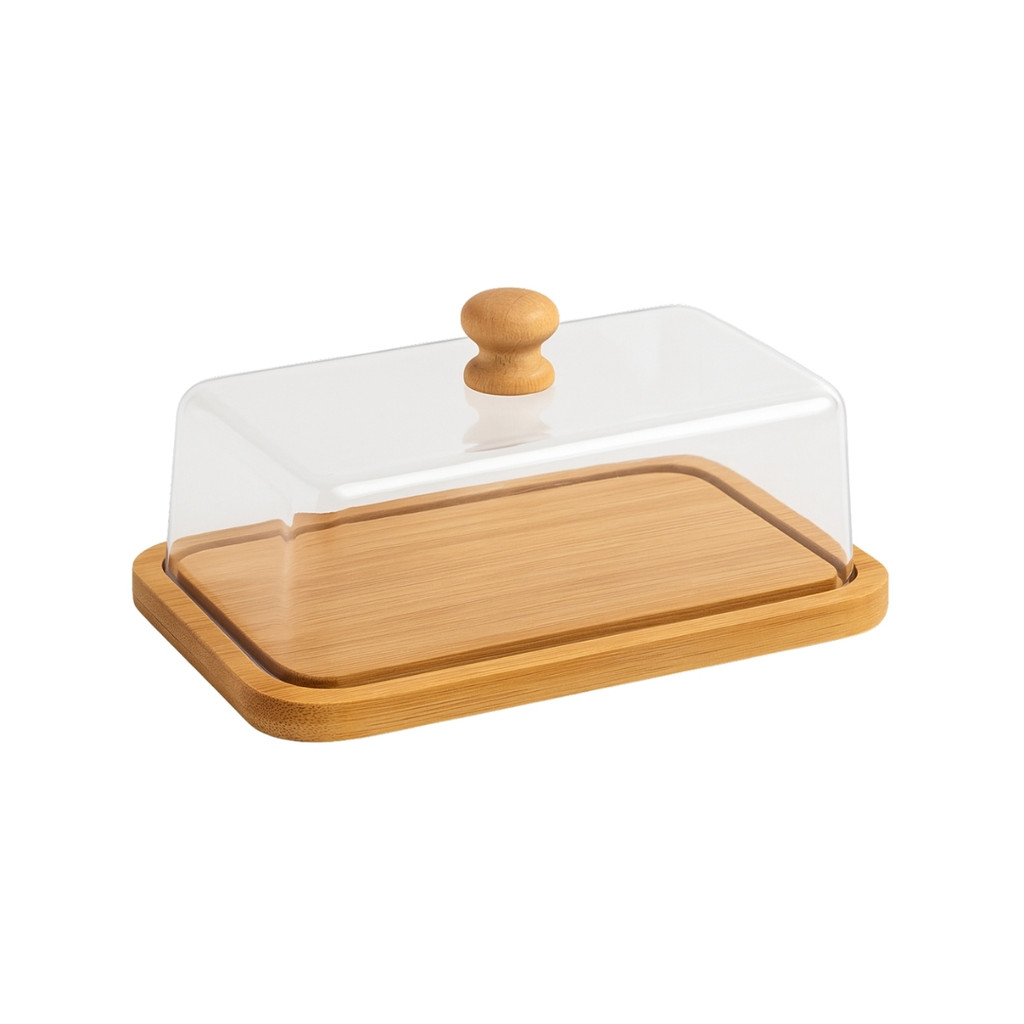 Manteigueira Porta Manteiga de Bambu Com Tampa Acrílica Mesa Posta Gourmet Elegante Café da Manhã