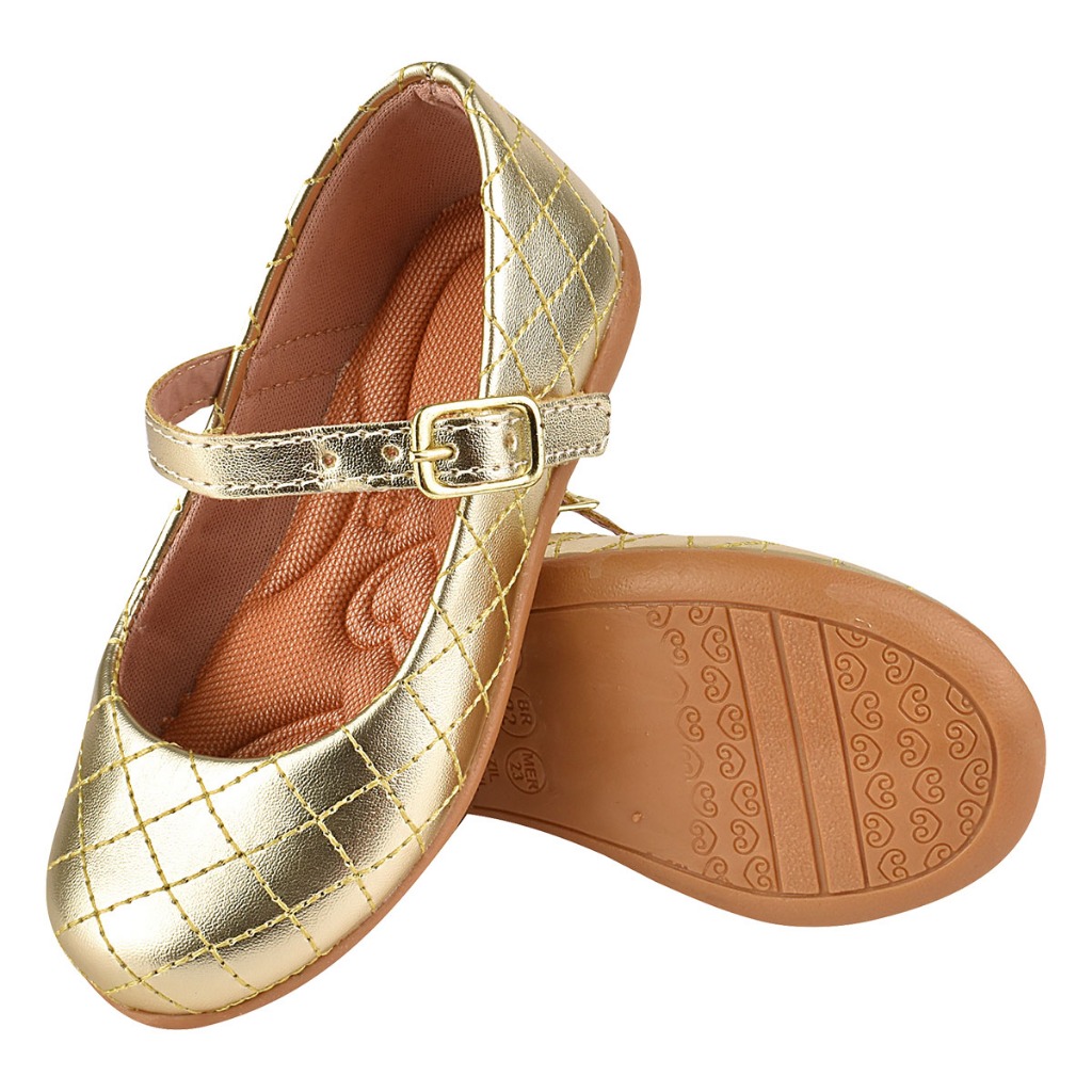 Sapatilha Infantil Feminina Barato Casual Sapato Boneca Festa Dourado