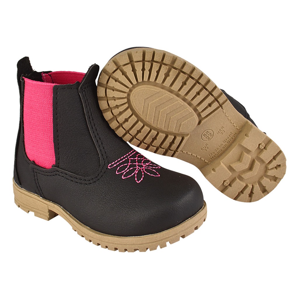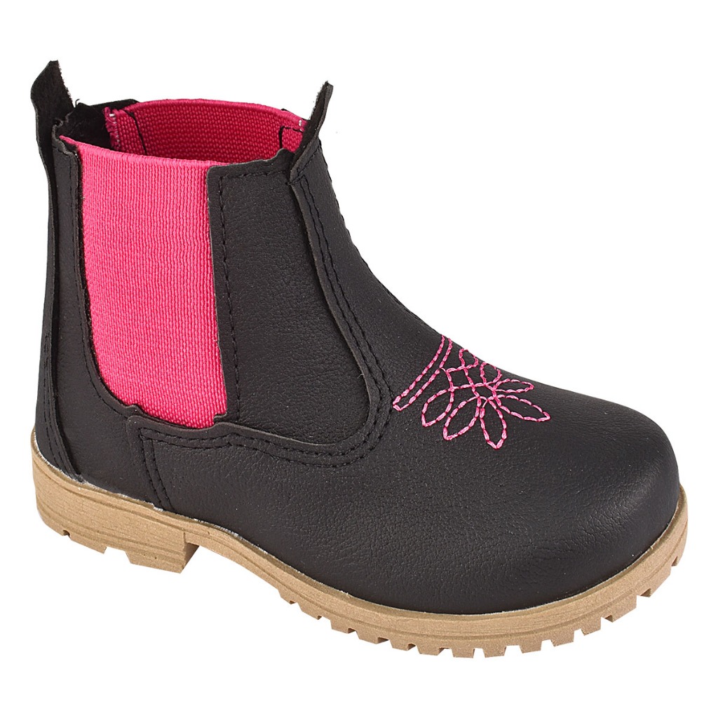 Botinha Jeca Menina Infantil Bota Princesa Bebê Cowntry B60 PRETO PINK