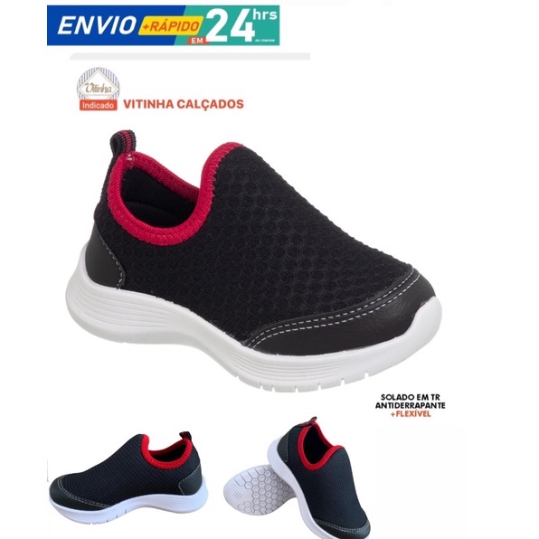 Tênis Infantil Calce Fácil Volta as Aulas Preto Para Meninos