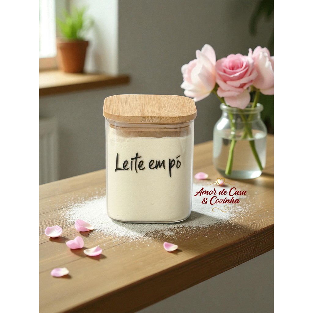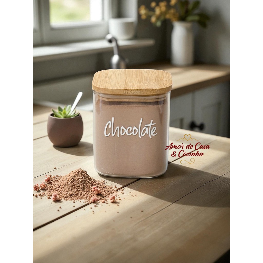 POTE DE VIDRO E BAMBU HERMÉTICO FLAT 800ML ESCOLHA SUA PERSONALIZAÇÃO