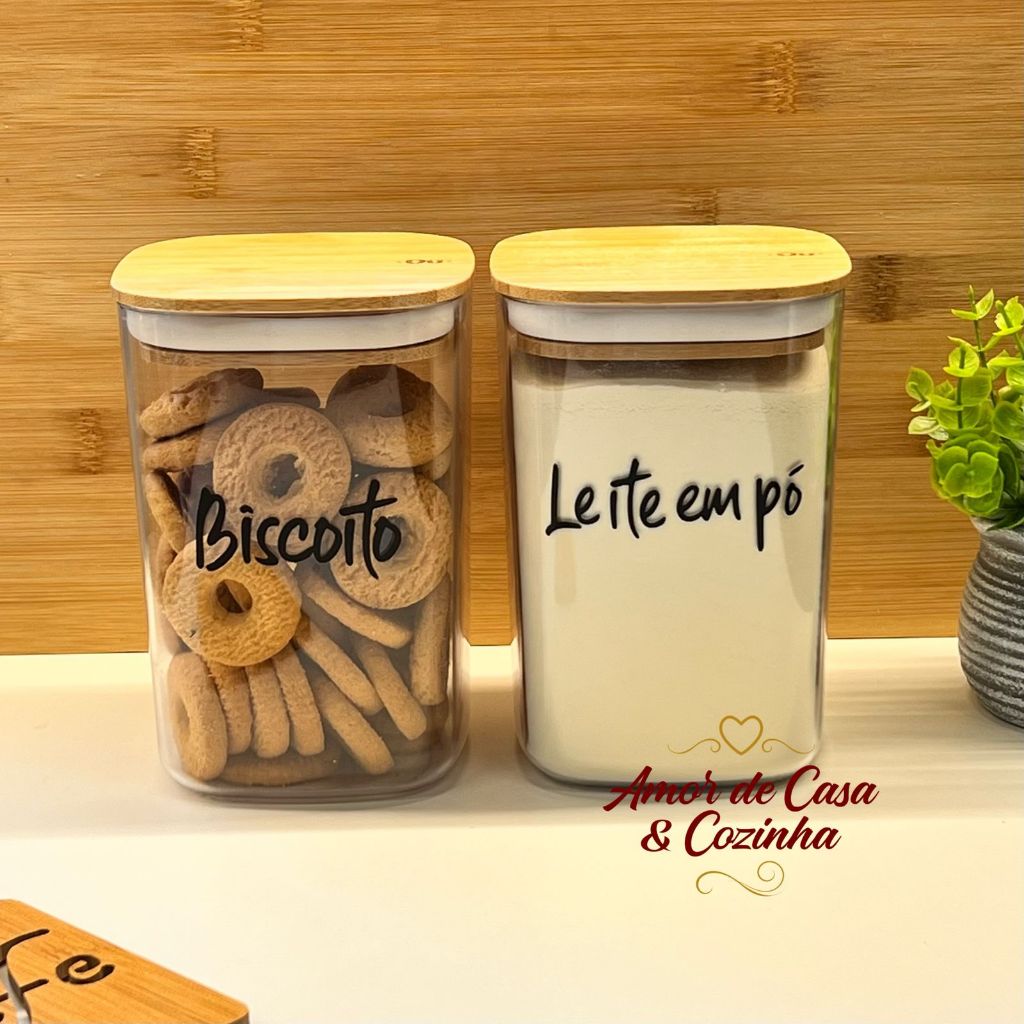 KIT 2 POTES HERMÉTICOS SEAL ESPECIAL TAMPA DE BAMBU 1,0L PERSONALIZADO