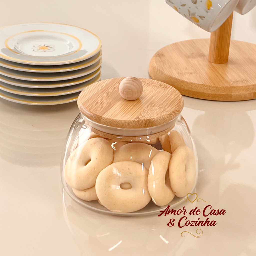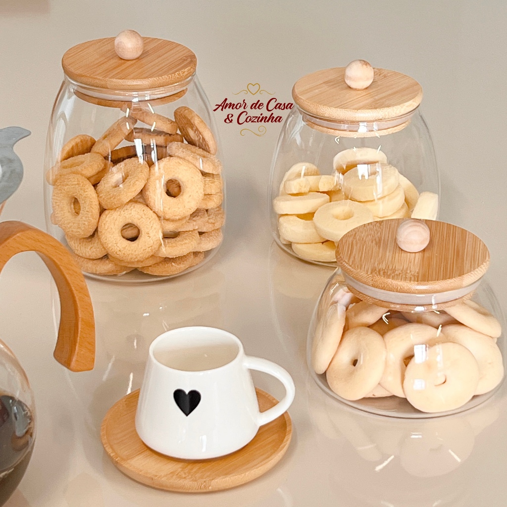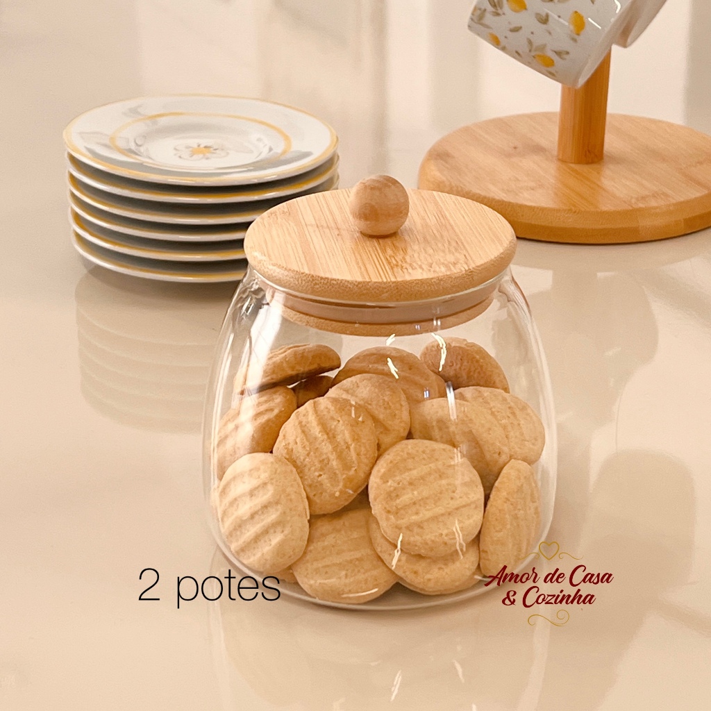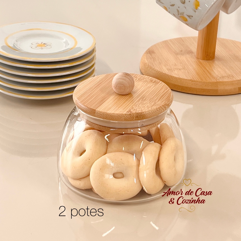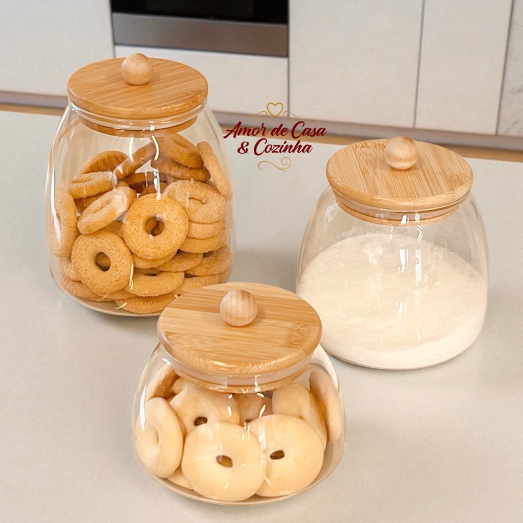 POTE DE VIDRO LADY COM TAMPA DE BAMBU TAMANHOS