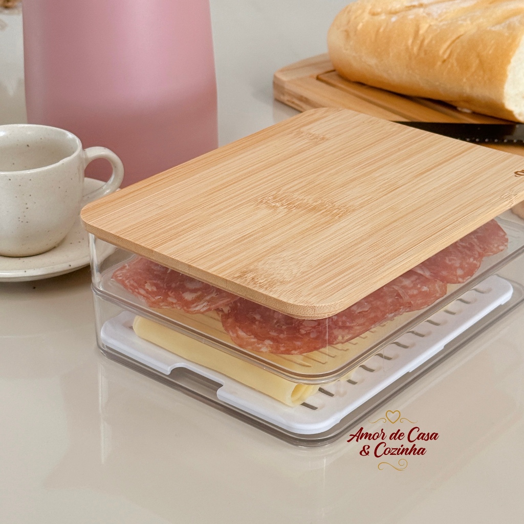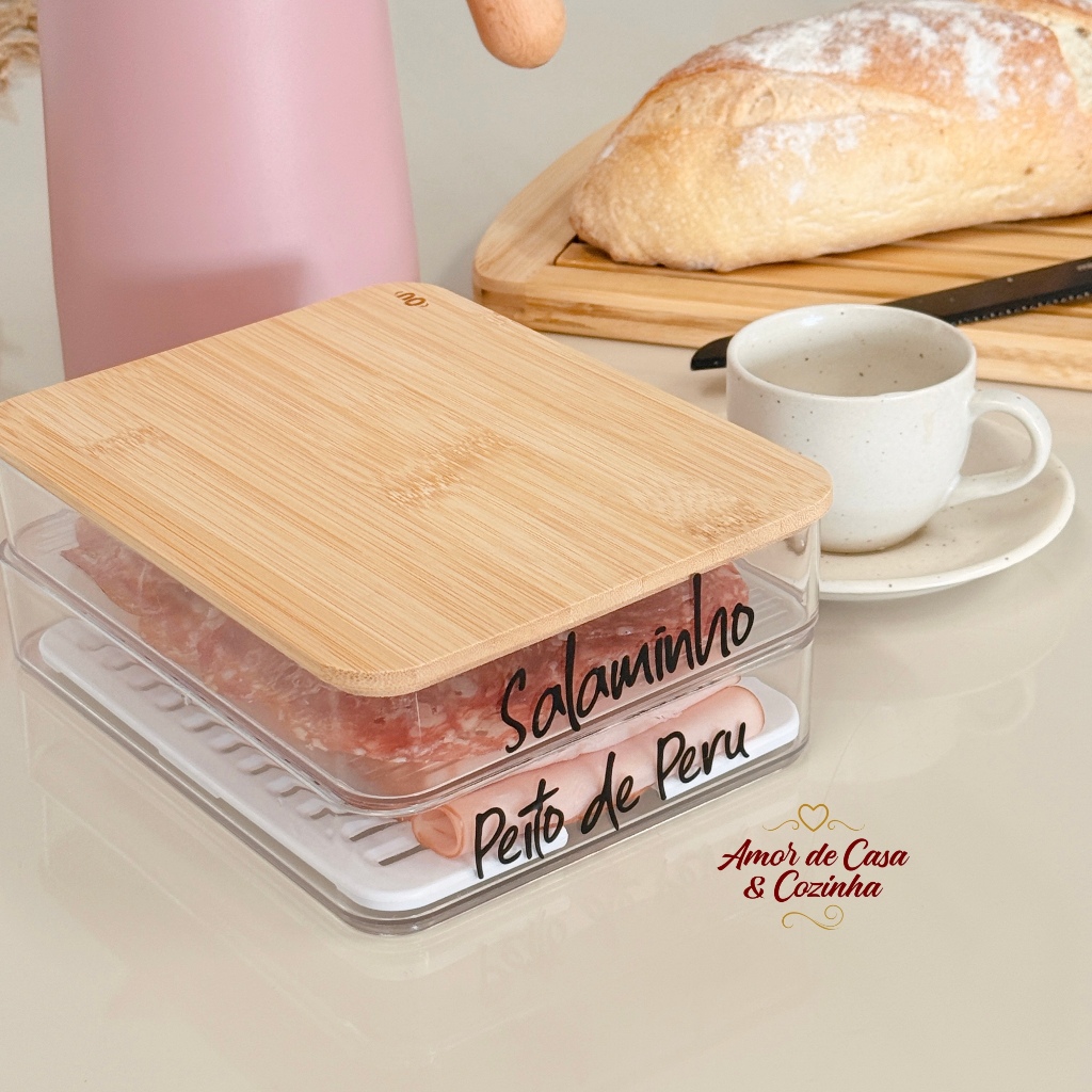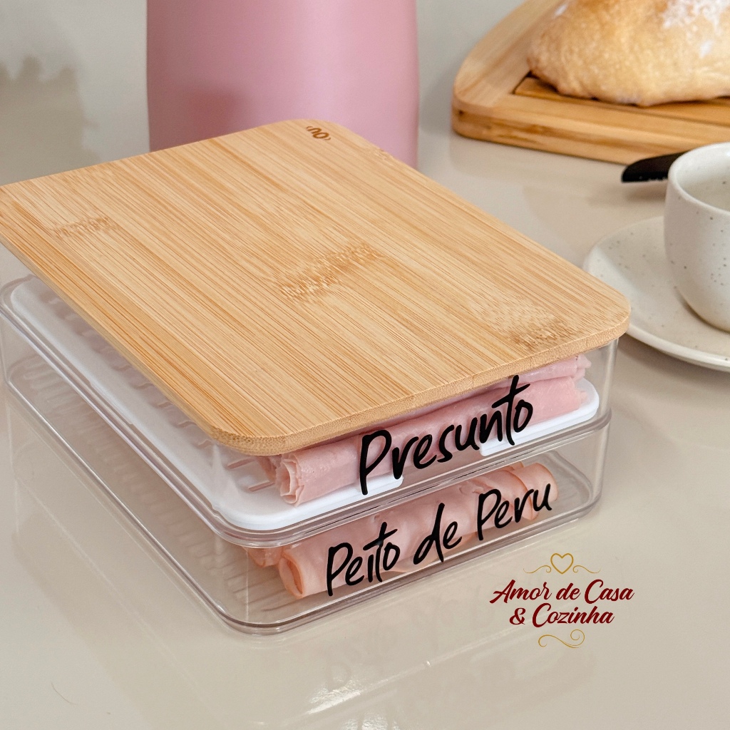 PORTA FRIOS DUPLO CLEAR ESPECIAL TAMPA DE BAMBU NATURAL PERSONALIZADO