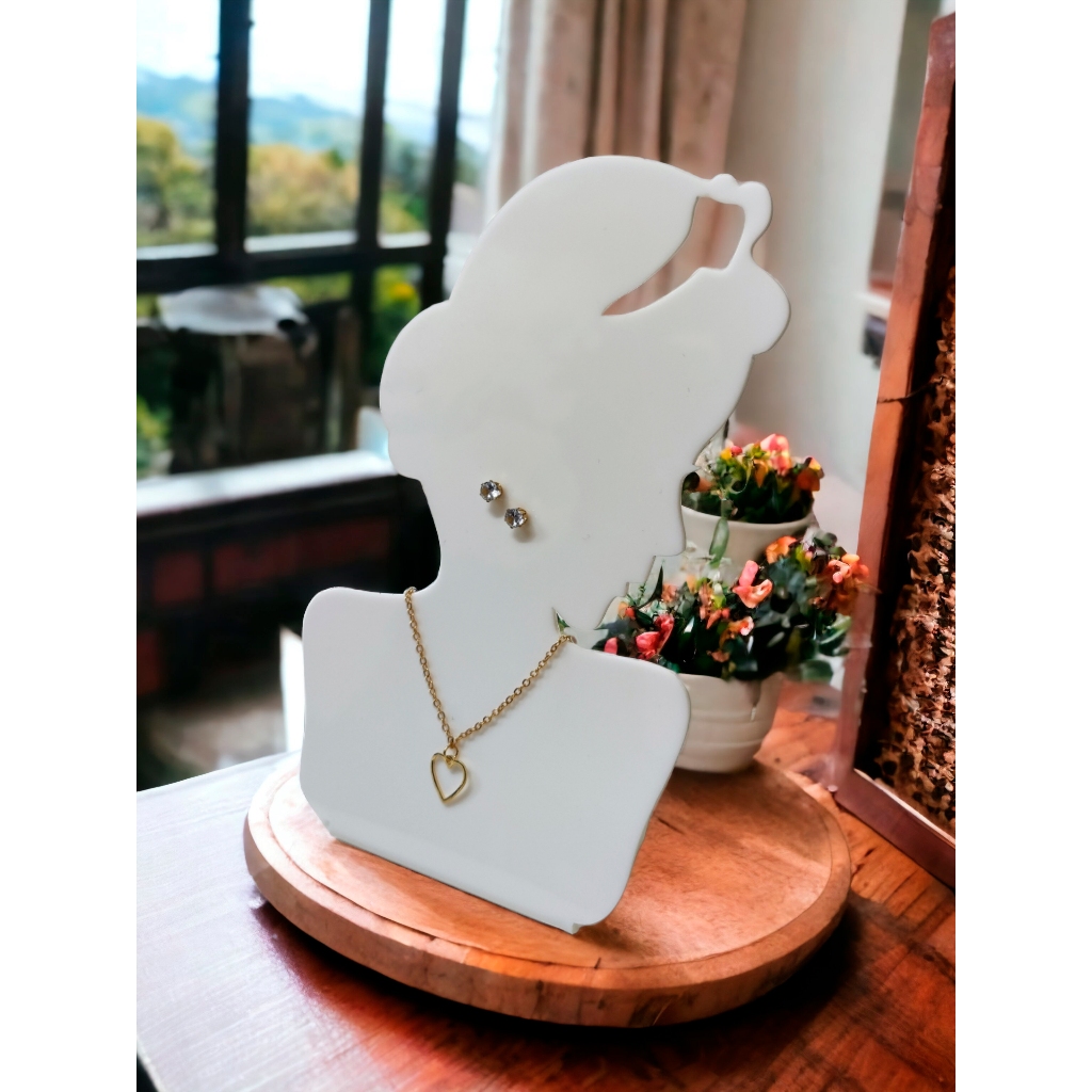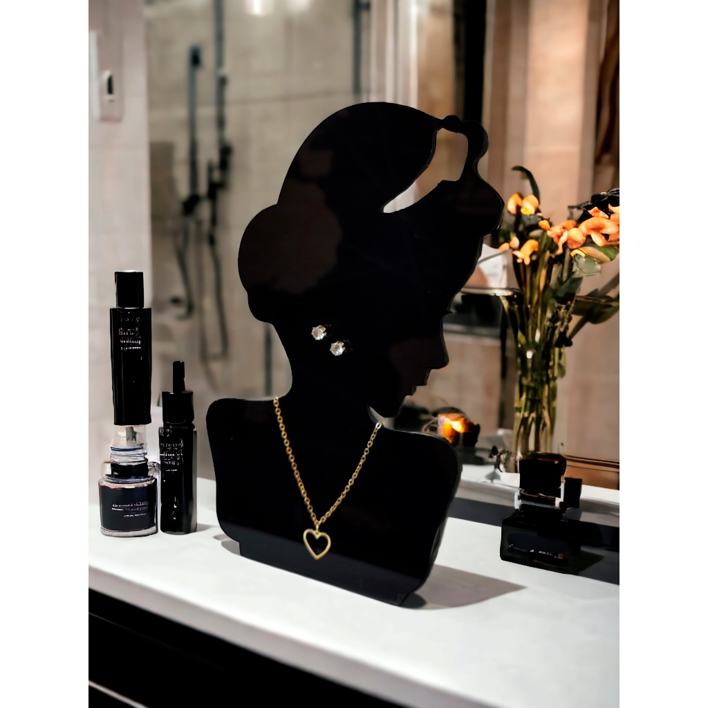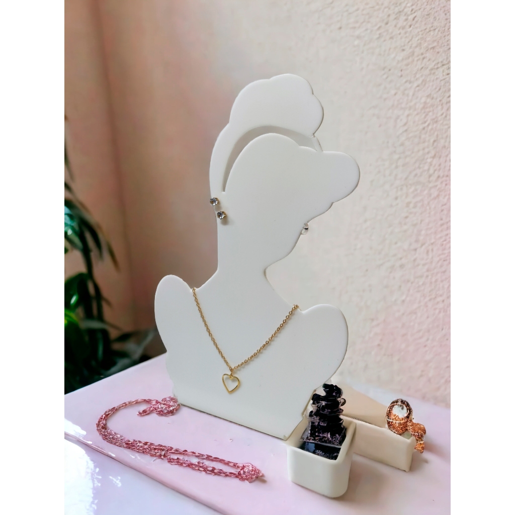 Expositor Vitrine de Colar e Brincos Bijuterias Modelo Princesas Cores Preto, Branco.