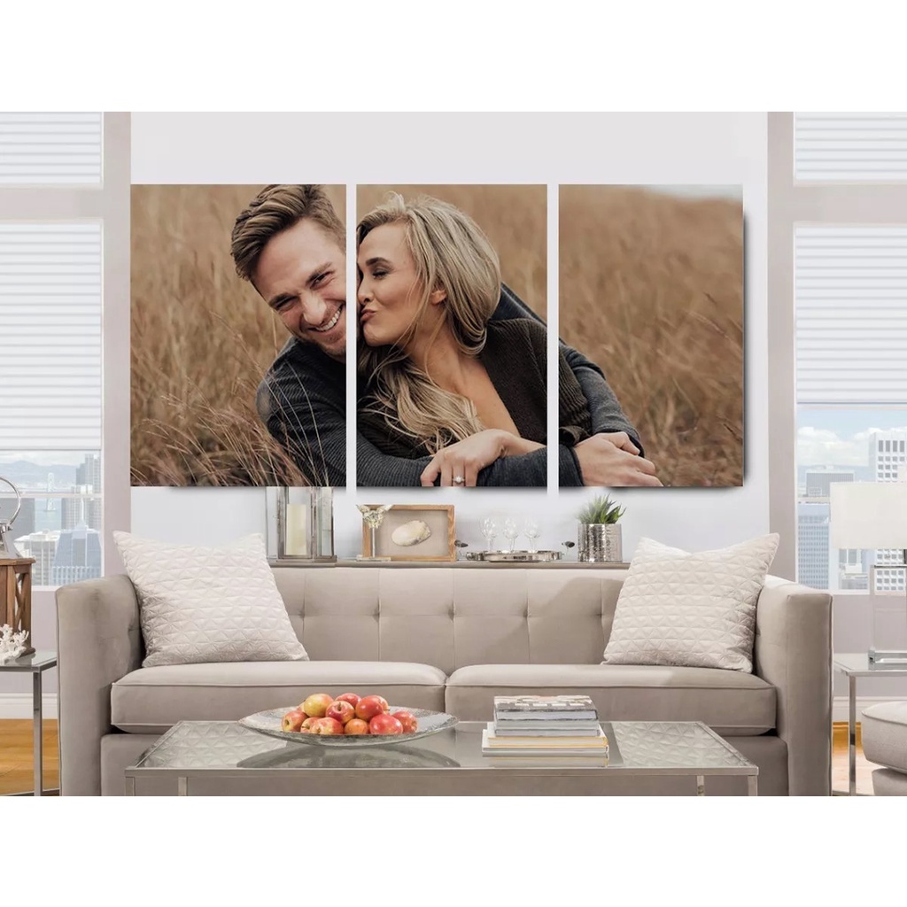 Kit Quadros Decorativo Mosaico 90x40 3 peças Personalizado Sua foto aqui MDF Família Casal Decoração