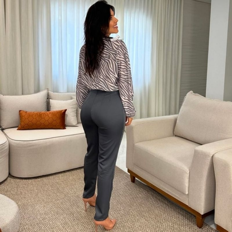 CALÇA FEMININA ALFAIATARIA ZARA CINTURA ALTA COM ZÍPER NA LATERAL ACOMPANHA CINTO