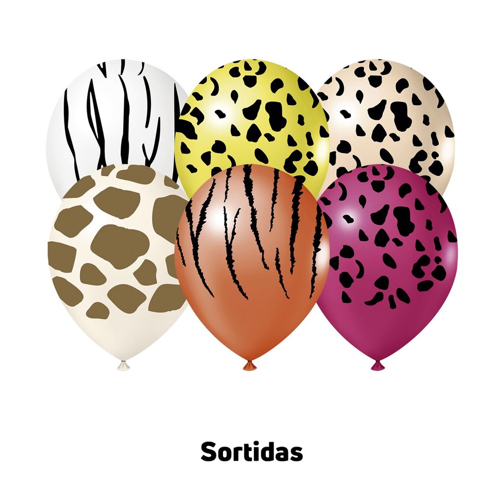 25 unid. BALÃO DE AR N. 9 estampada animal selva zebra /onça / tigre/girafa ,BEXIGA decorada festa safari numero 9"