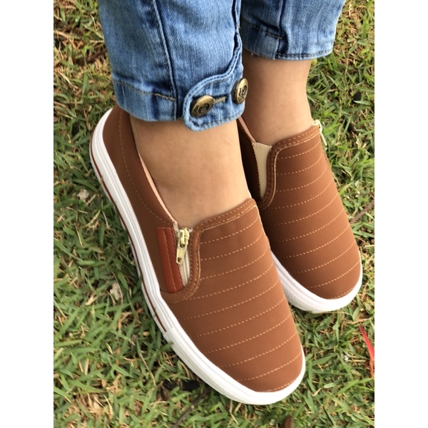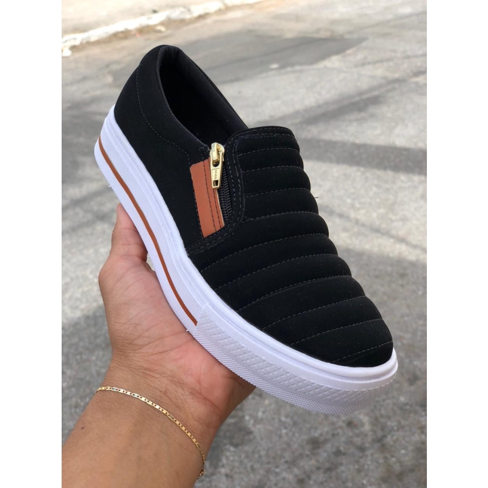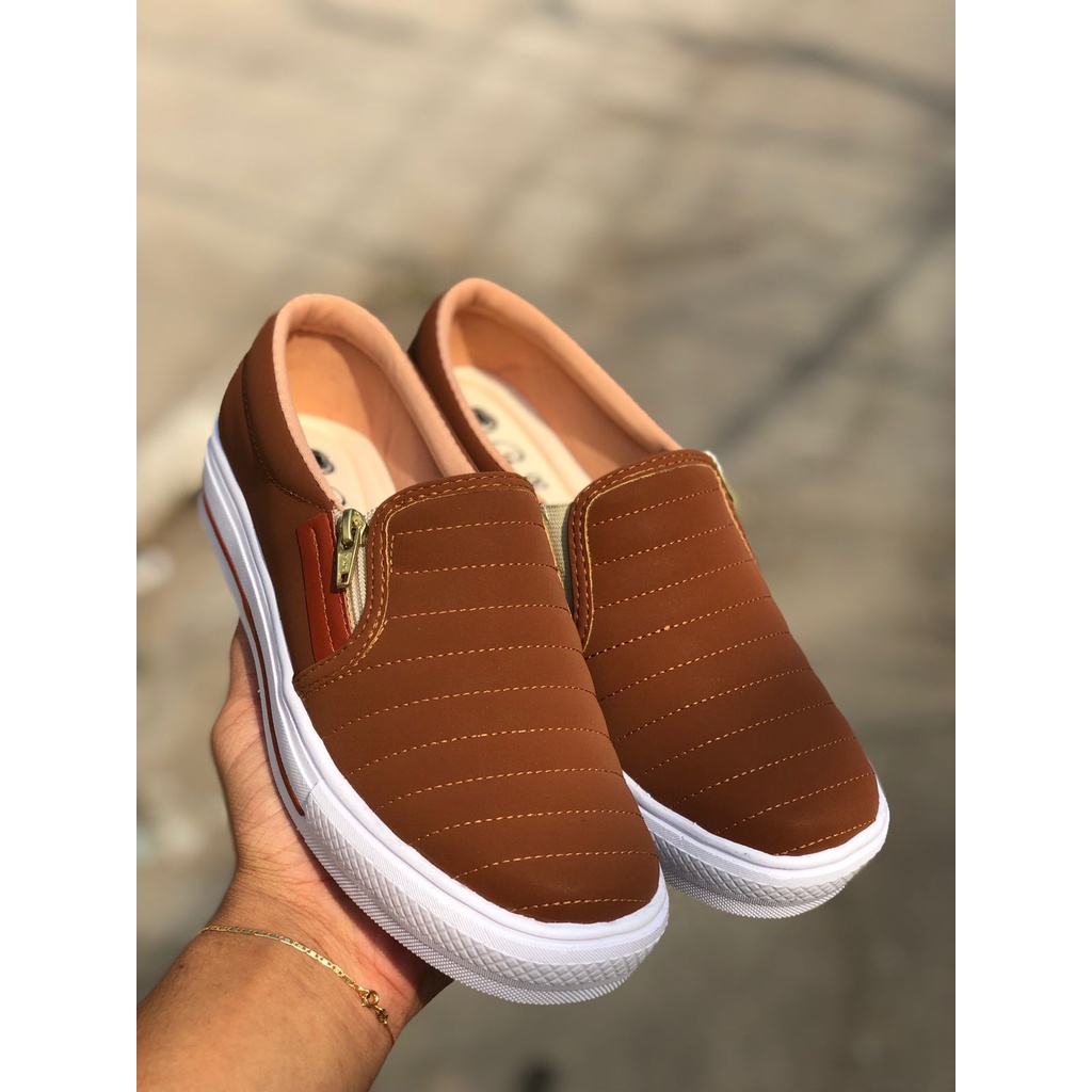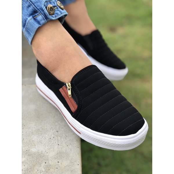 Tênis Sapatênis Sapatilha Feminino Casual Slip On Com Zíper Confortável Envio Imediato