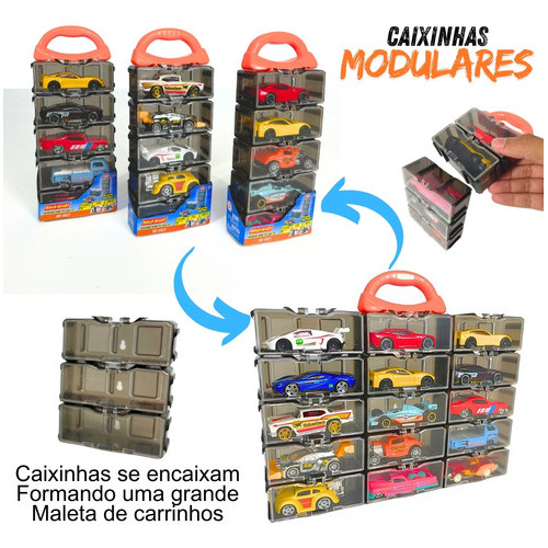 Kit 15 Carrinhos De Ferro Porta Maleta Compatível Com Hotwheels