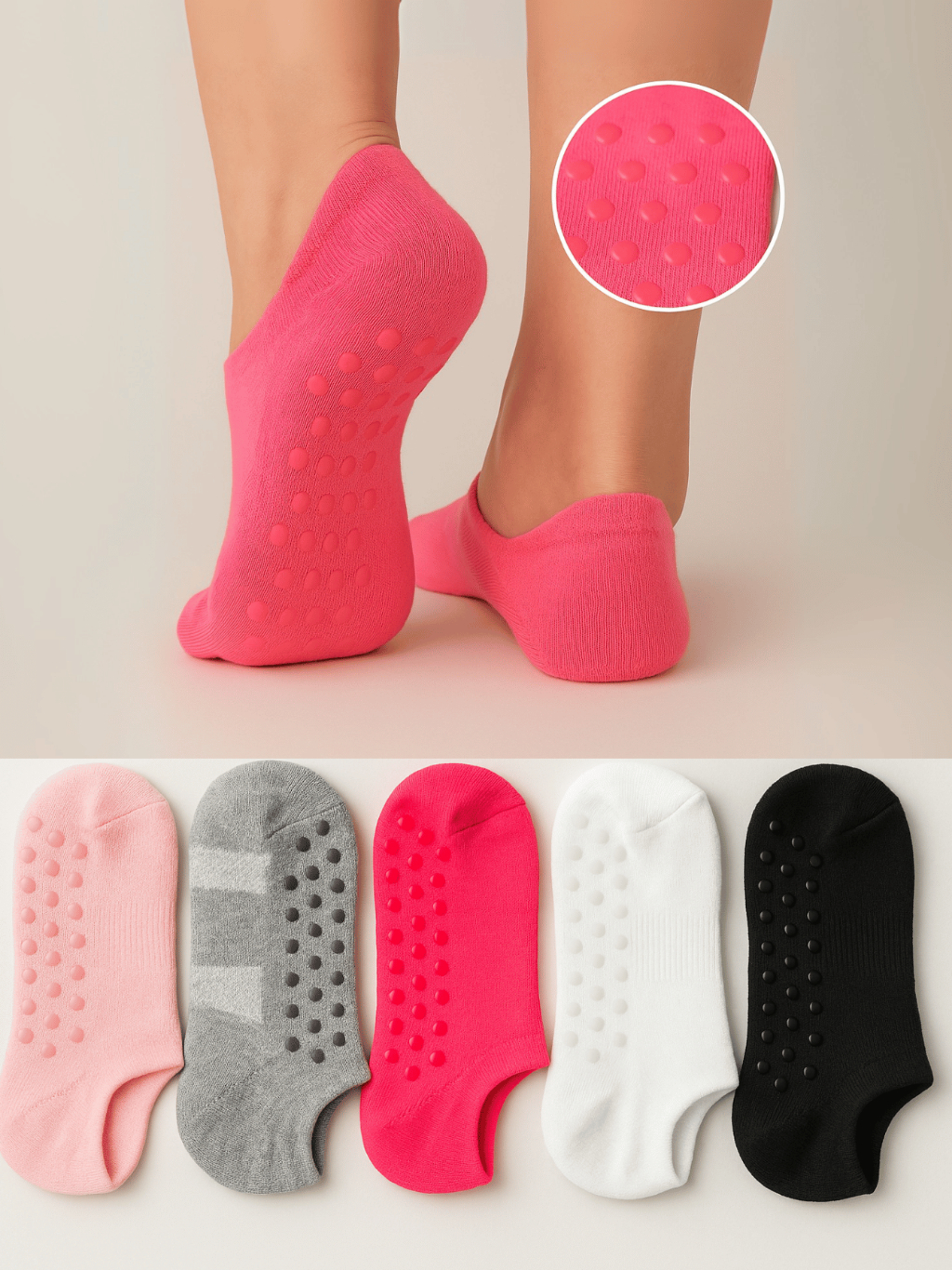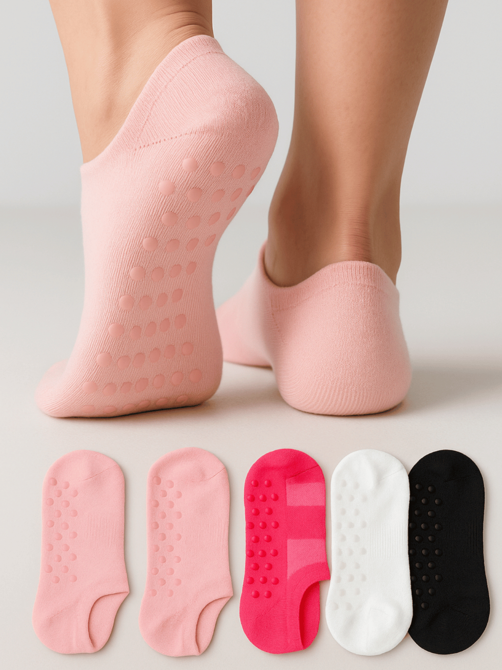 Kit 5 pares meia sapatilha com antiderrapante pilates yoga algodão
