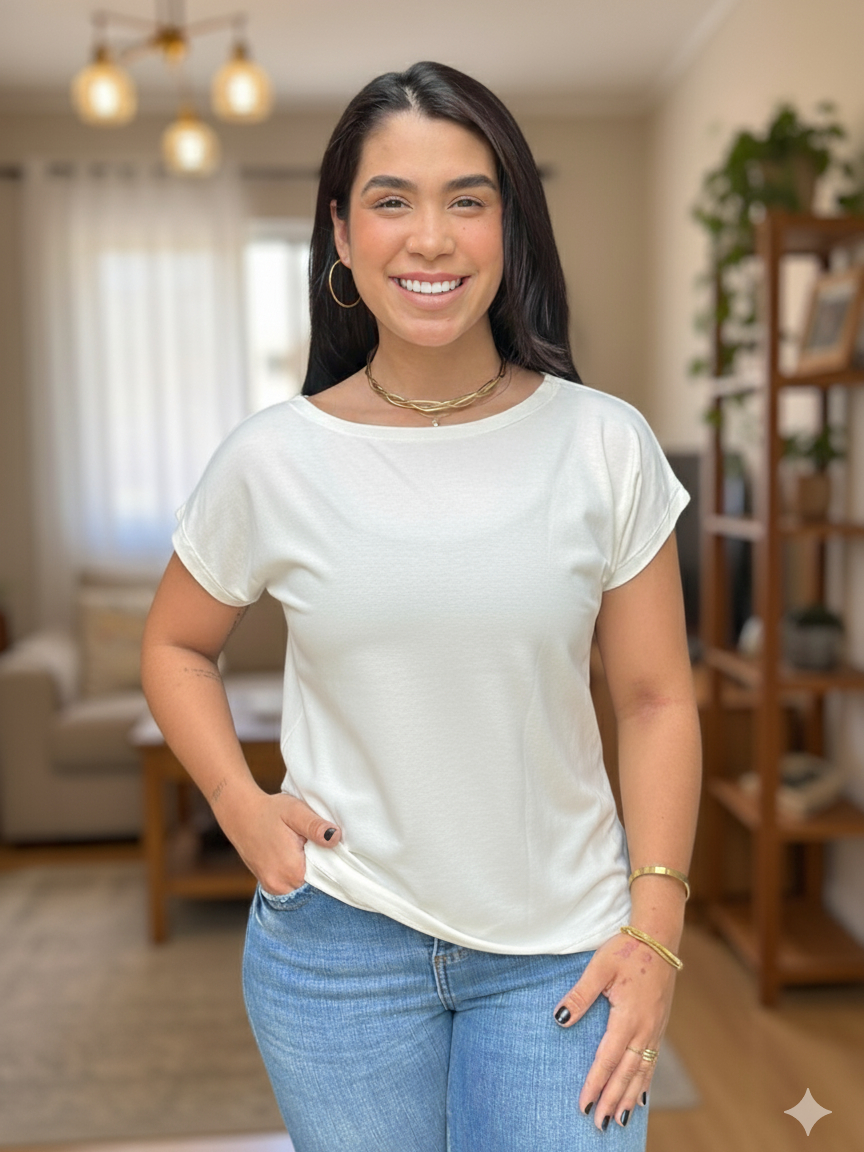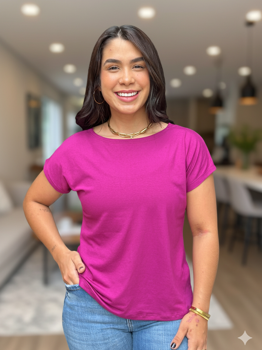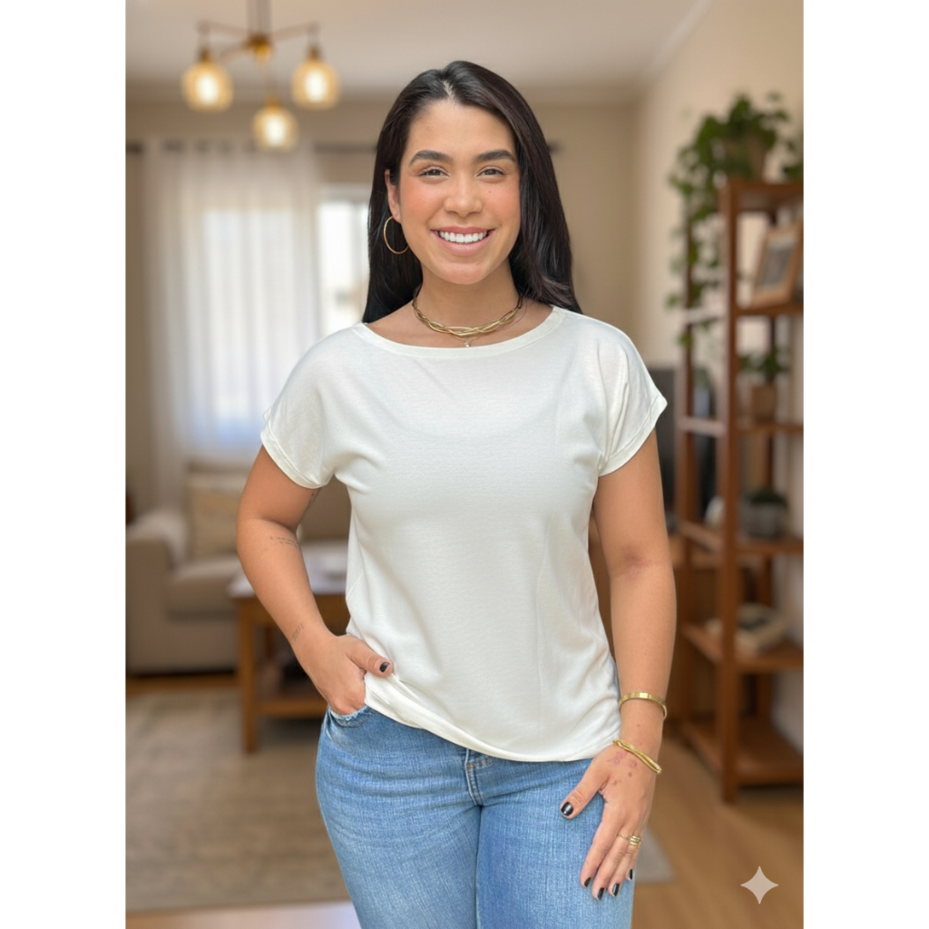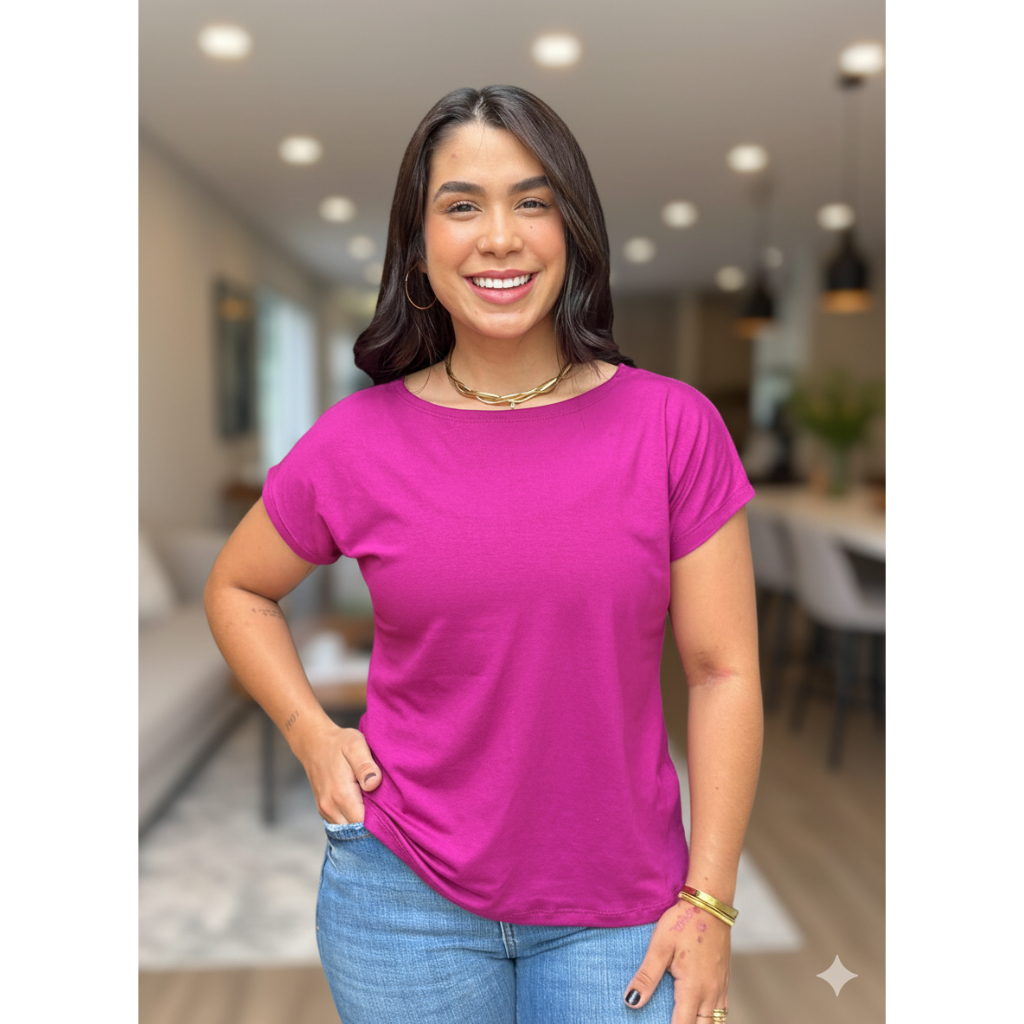 Blusa Feminina Básica Tecido em Malha Viscolycra - Blusinha Gola Canoa ( Boat) - T-shirt Leve e Confortável Soltinha
