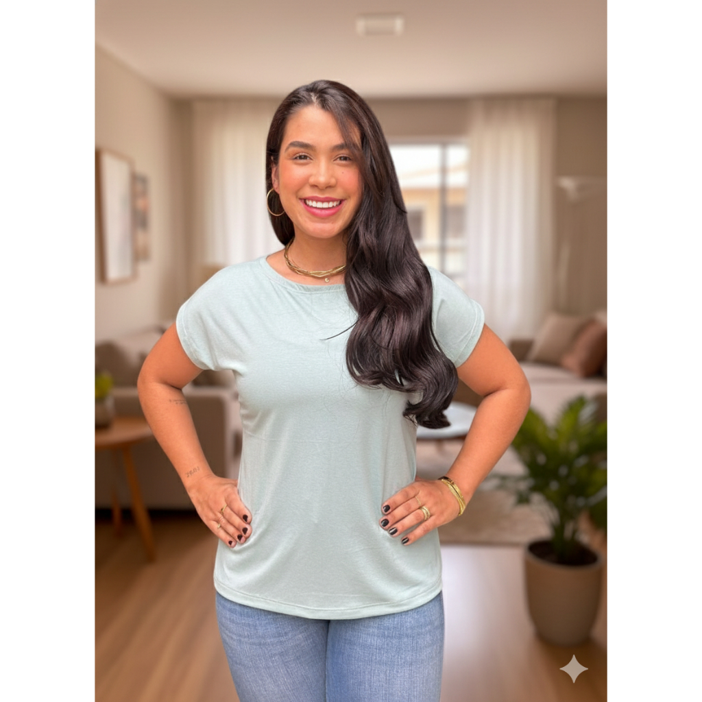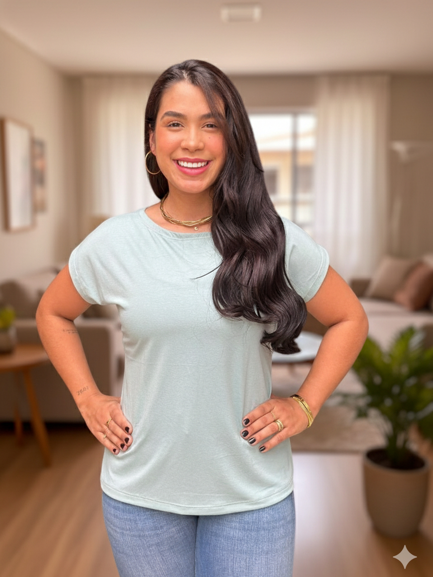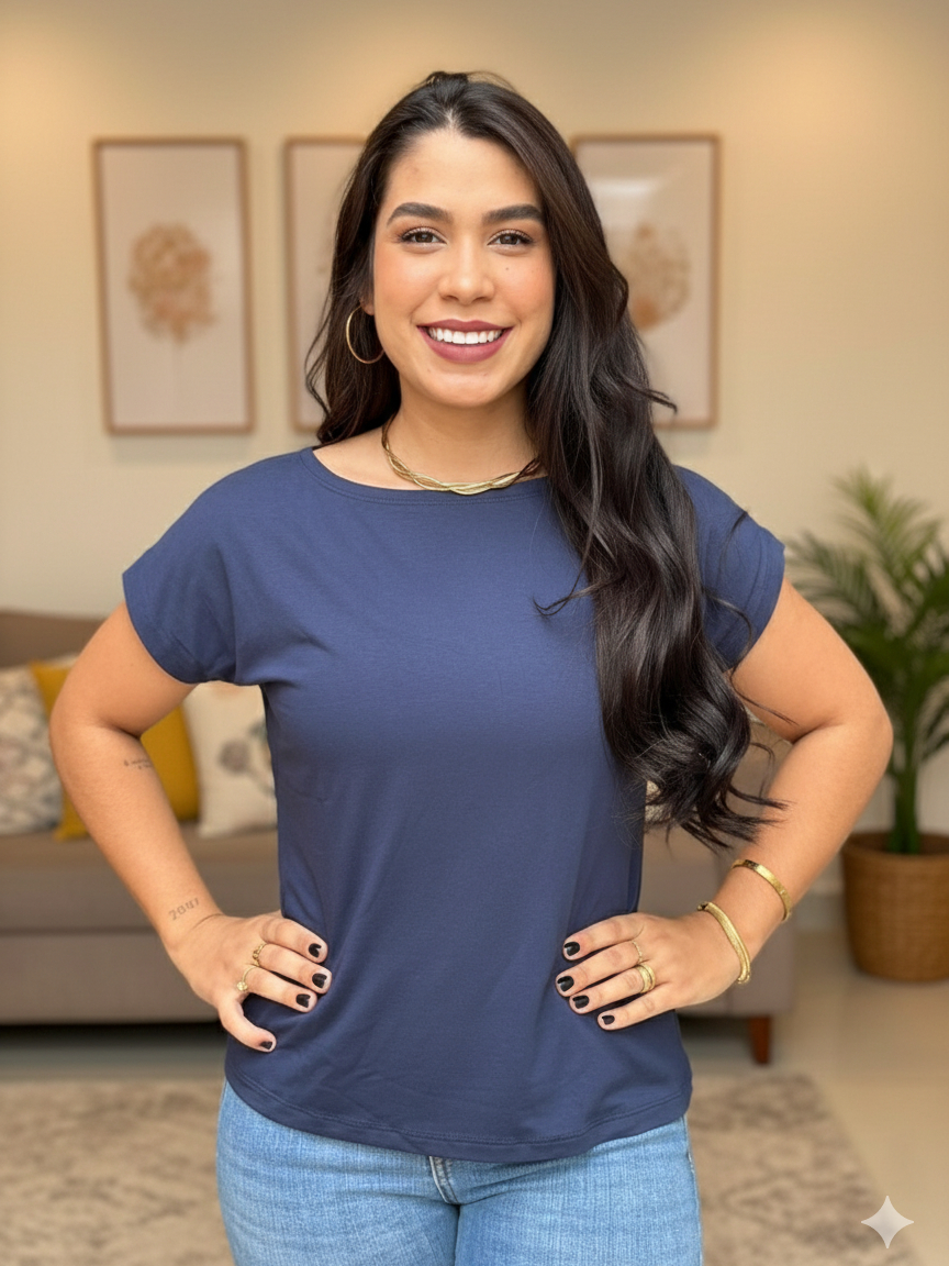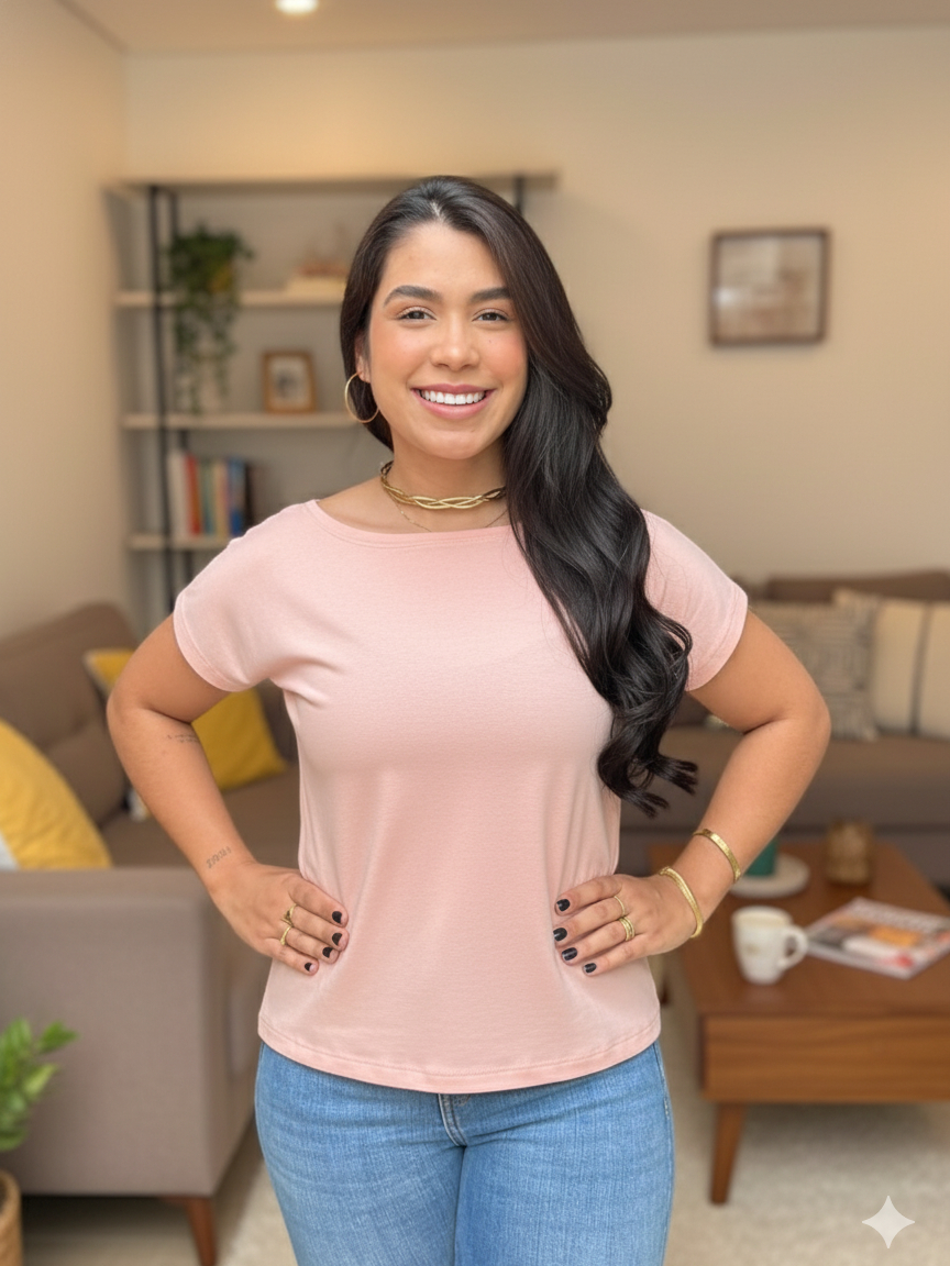 Blusa Feminina Básica Tecido em Malha Viscolycra - Blusinha Gola Canoa ( Boat) - T-shirt Leve e Confortável Soltinha