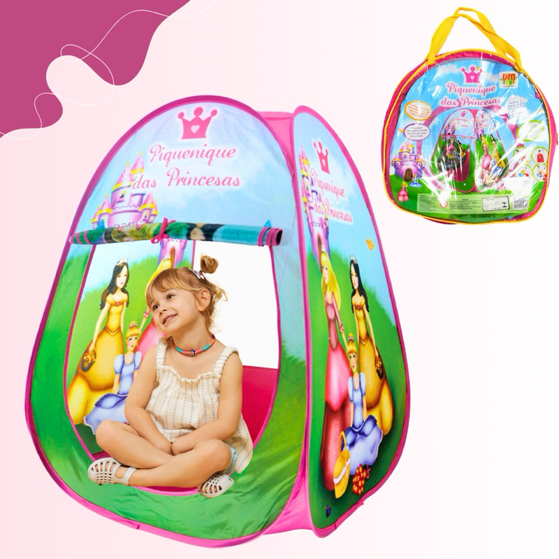 Barraca Toca Infantil Dobrável Cabana Princesas Rosa Menina