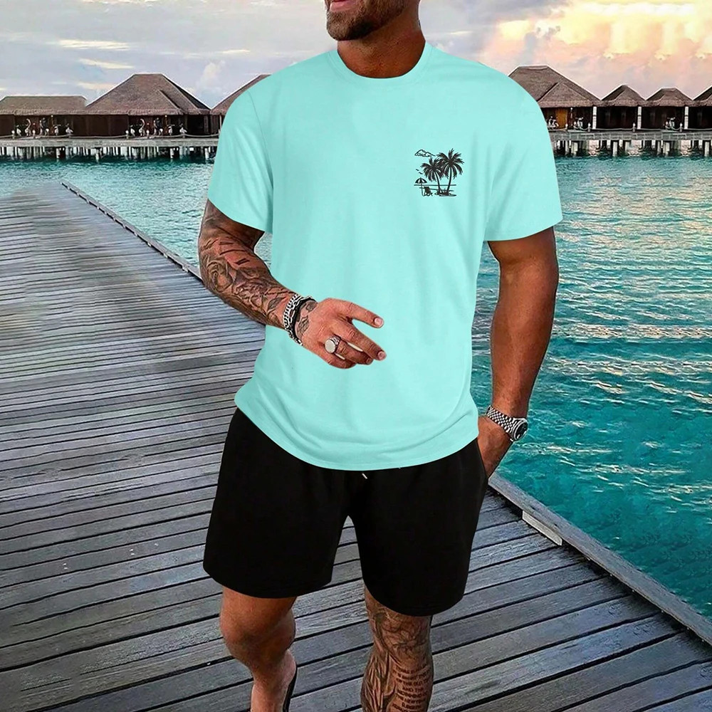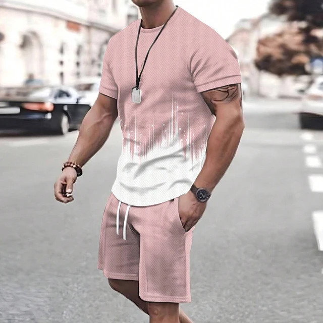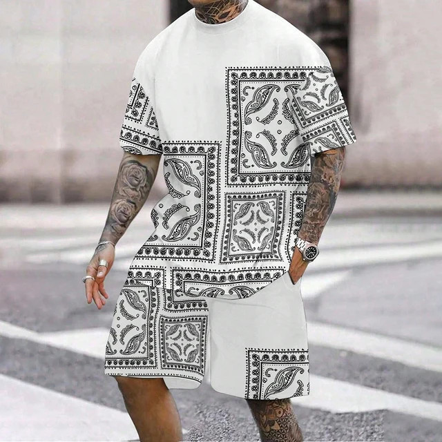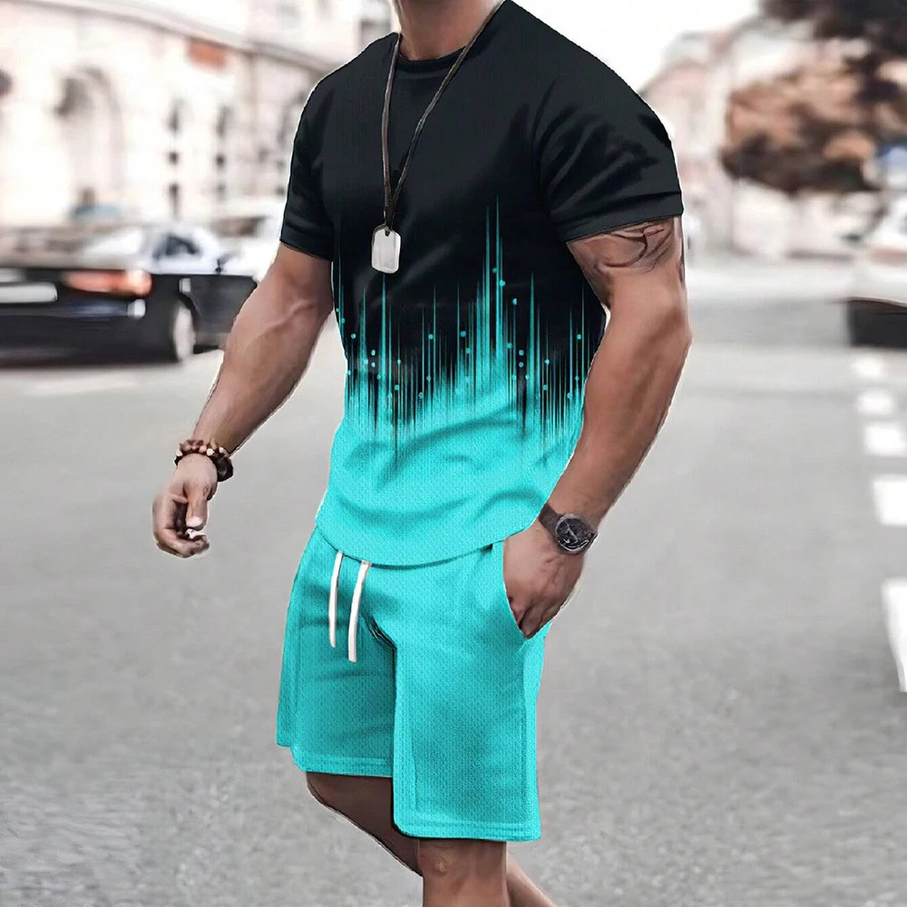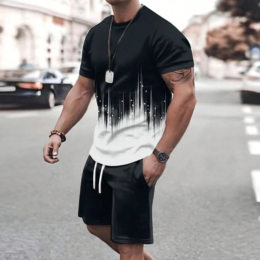 Conjuntos De Camisetas De Manga Curta Masculina Moda Shorts Conjunto De 2 Peças Preto E Azul Impresso Solto Casual Camis