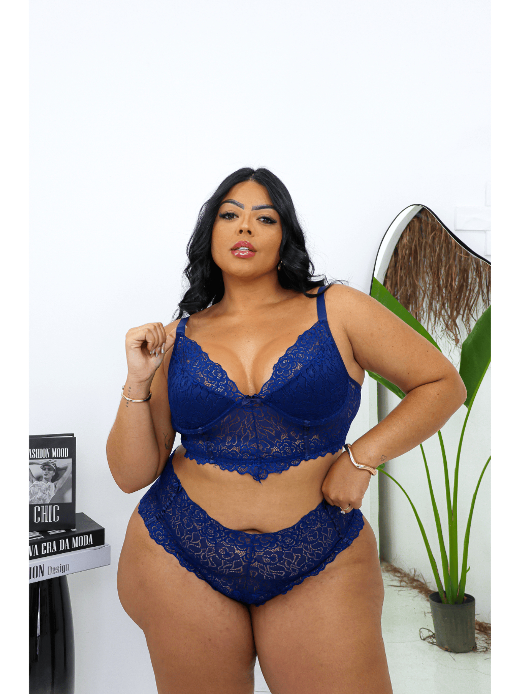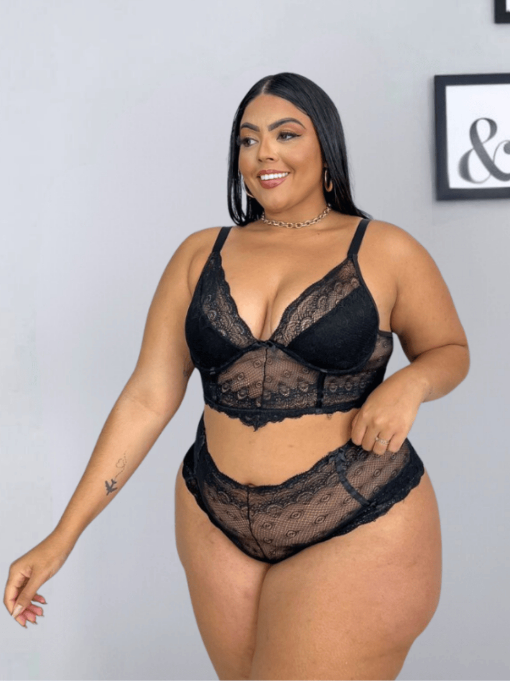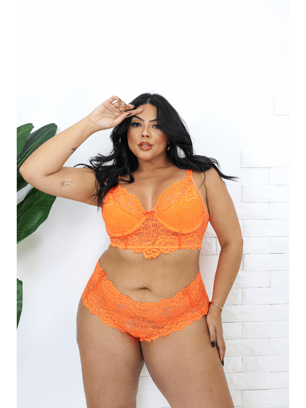 Conjunto Lingerie Plus com Alça Reforçada Croped e Caleçon Plus Size Sensual Moda