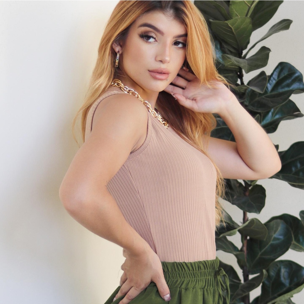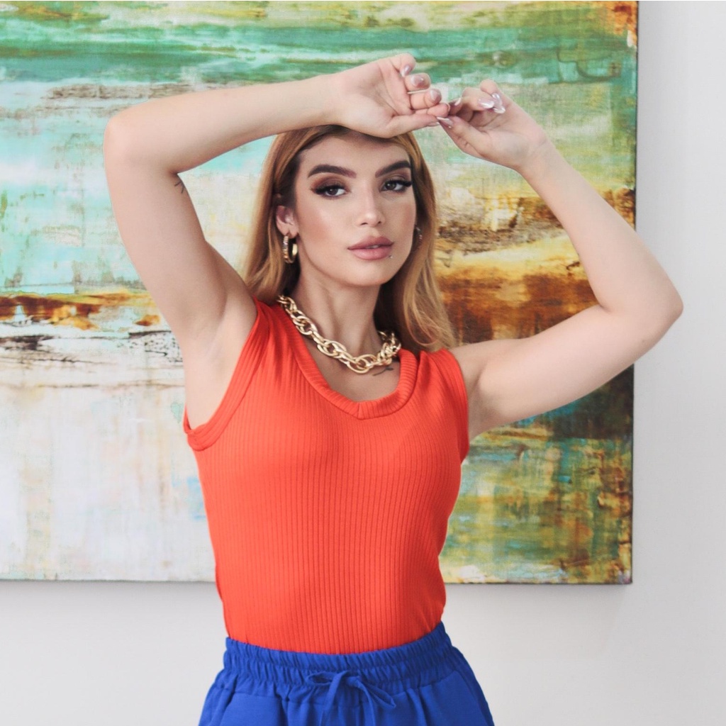 Regata Feminina canelada gola V Basica Alça Larga Com Elastano Varias Cores