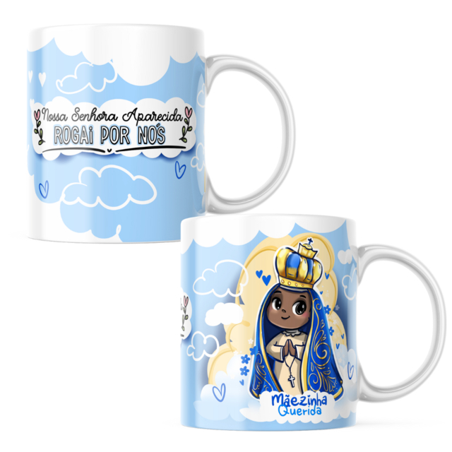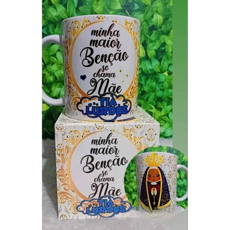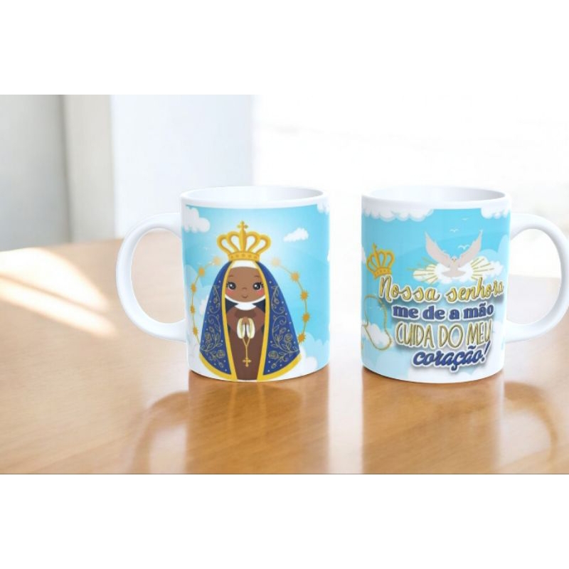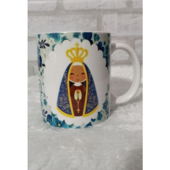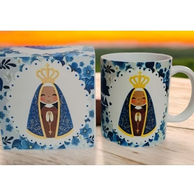Caneca cerâmica personalizada nossa senhora Aparecida + caixinha personalizada.